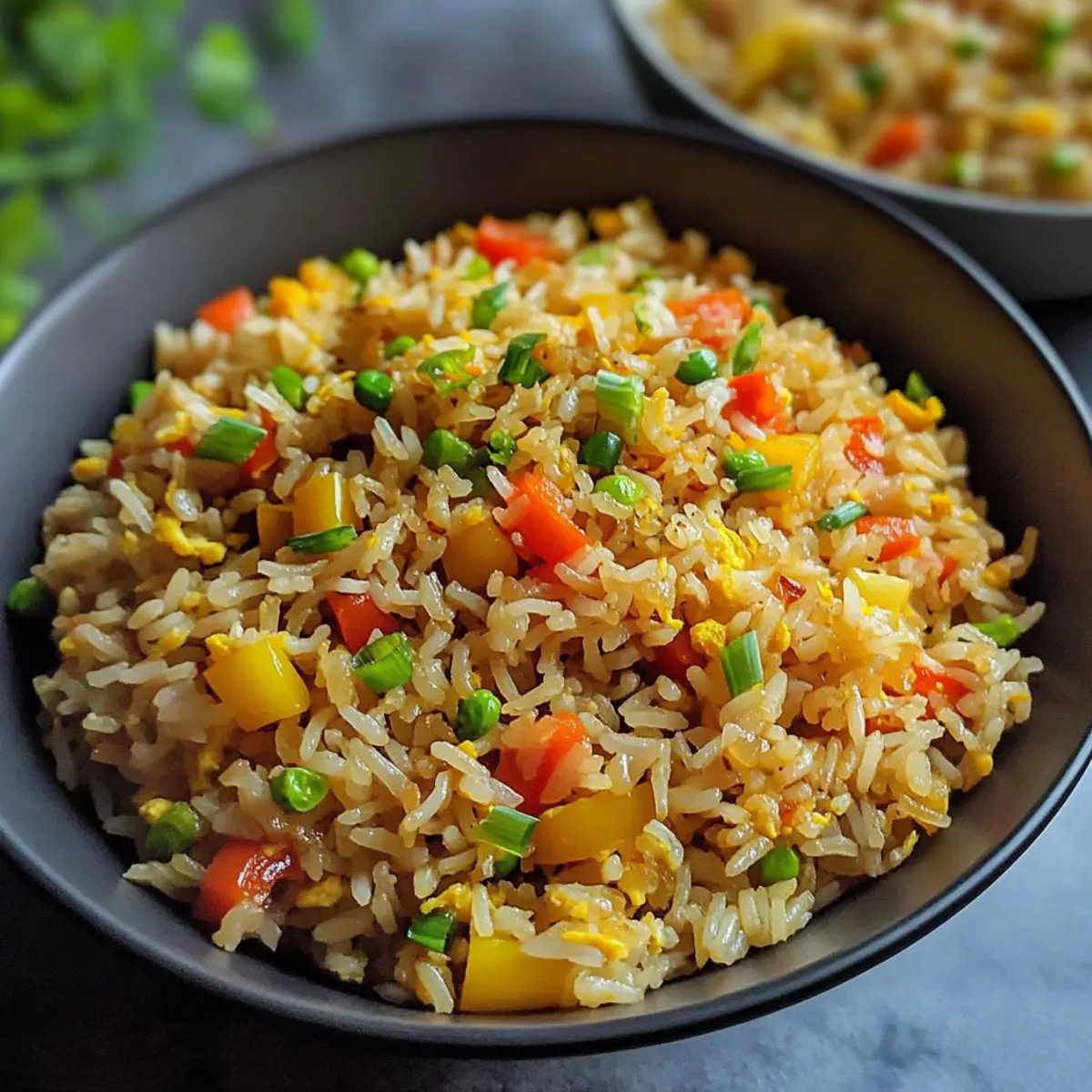 - Garnieren: Serviere den Bratreis heiß, garniert mit Frühlingszwiebeln.