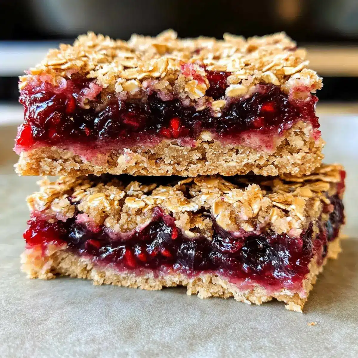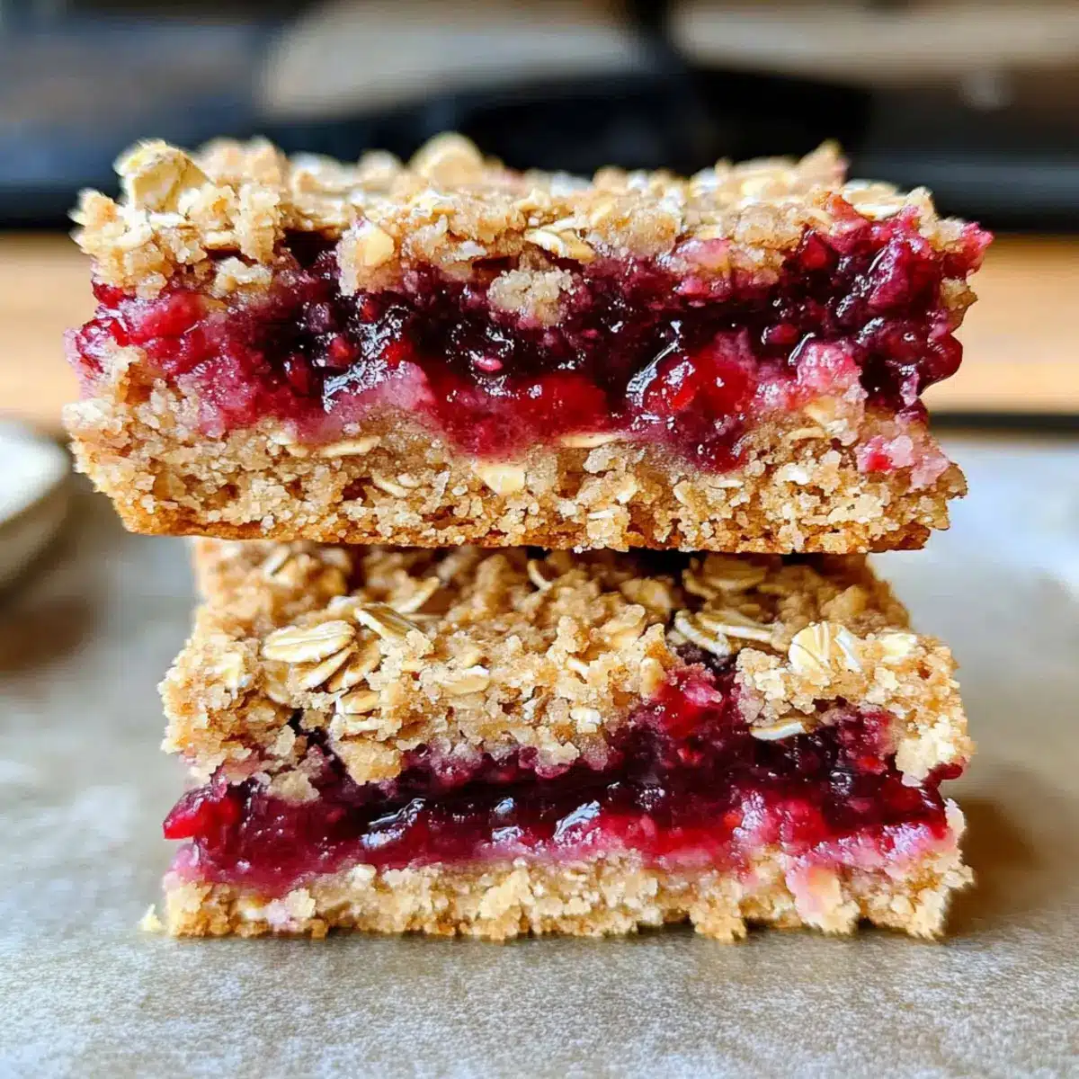 Optimale Lagerung: Bewahre die Beeren-Hafer-Riegel in einem luftdichten Behälter auf, um ihre Frische zu erhalten. Sie halten sich bei Raumtemperatur etwa 5 Tage.