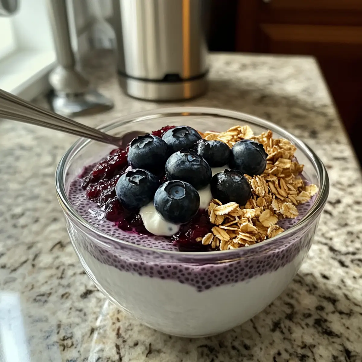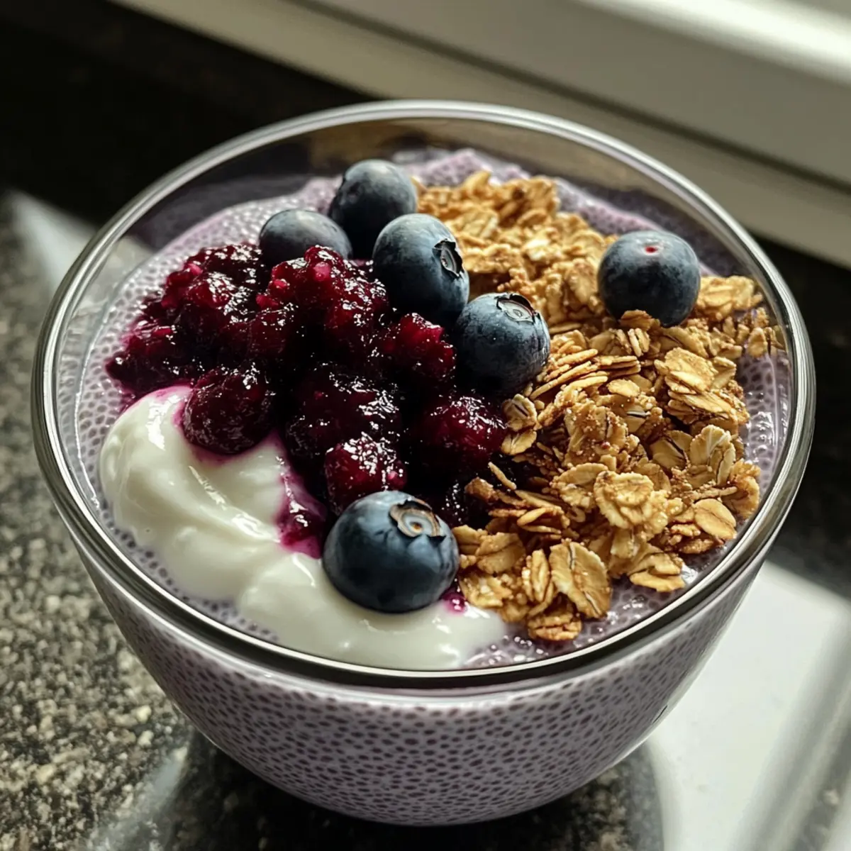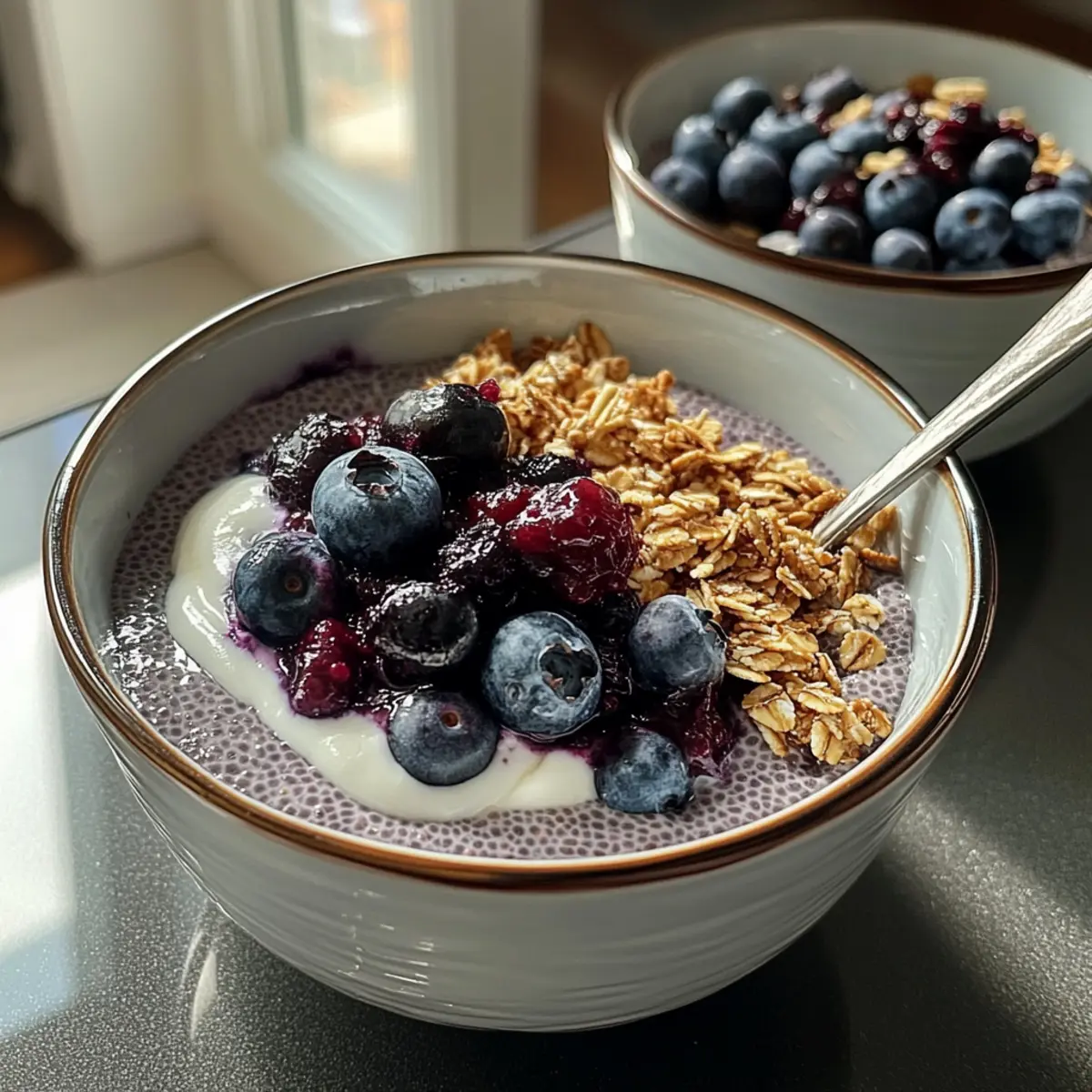 Mit diesen Zutaten gelingt dir die perfekte Blaubeer Chia Frühstücksschüssel – eine köstliche und gesunde Morgenmahlzeit!