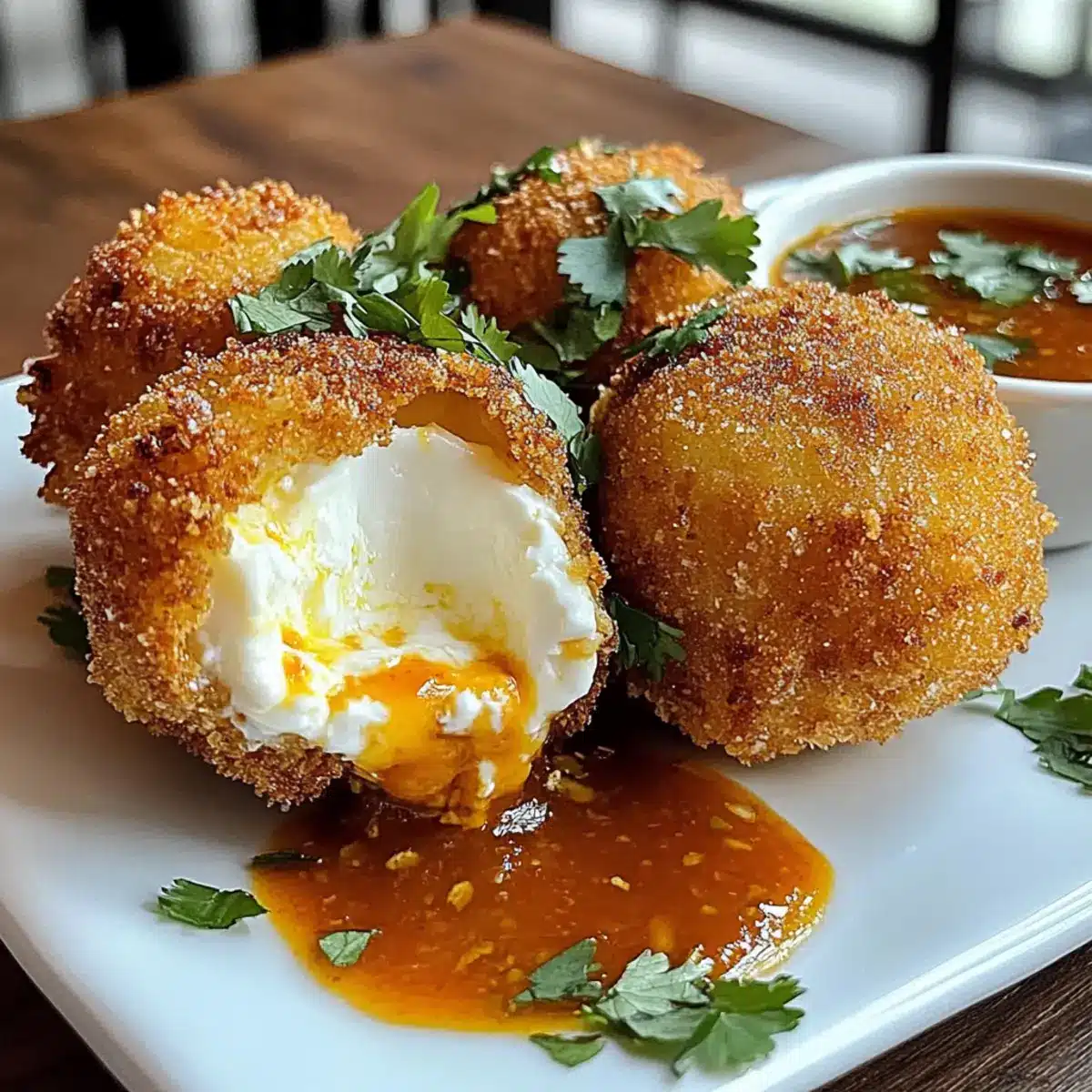 Frittierte Burrata mit scharfer Soße genießen