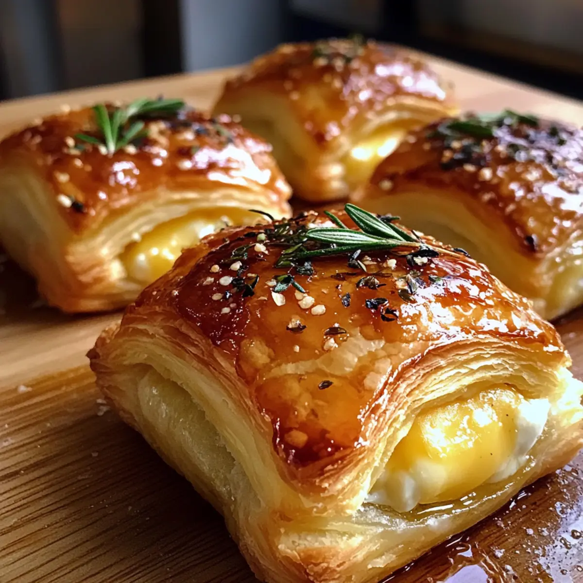 Heiße Honig Blätterteig Häppchen mit Brie