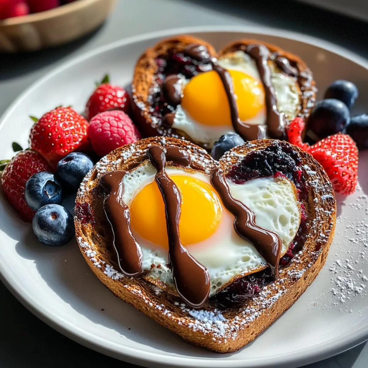 Romantischer Valentinstag: Herzbrot mit Schokolade und Beeren