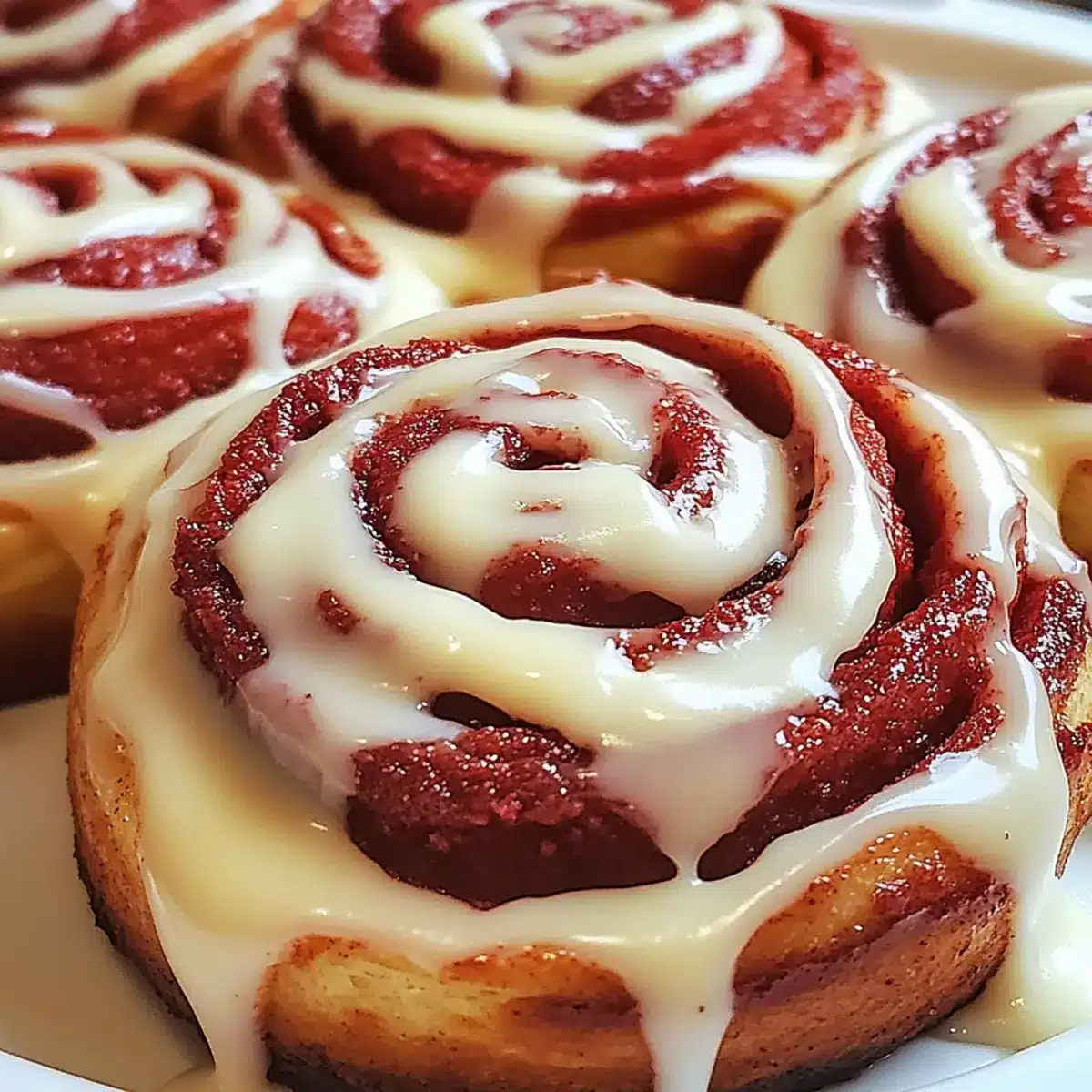Rote Samt Zimtschnecken mit Frischkäseglasur