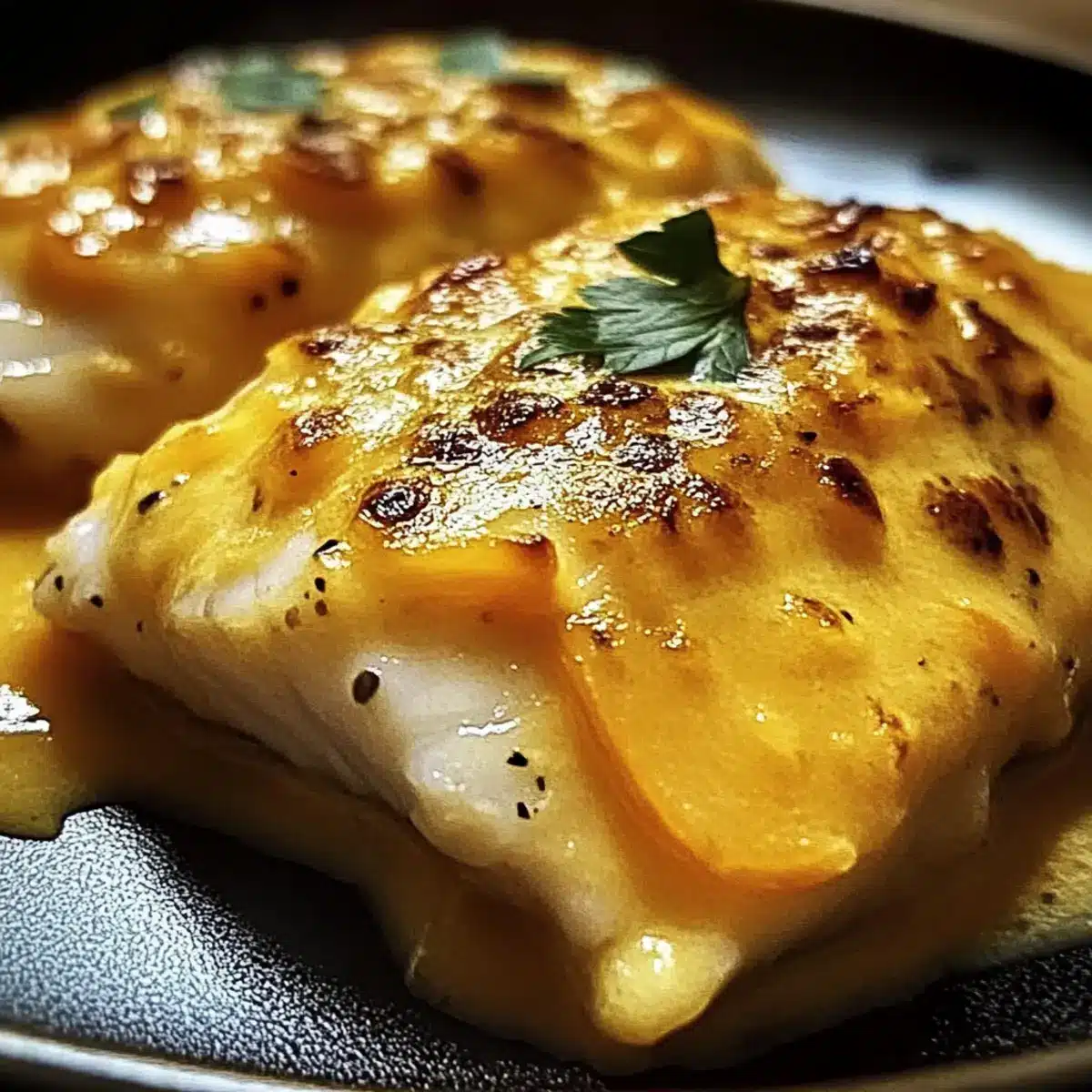 Überbackener Seelachs mit Möhren-Senf-Soße leicht gemacht