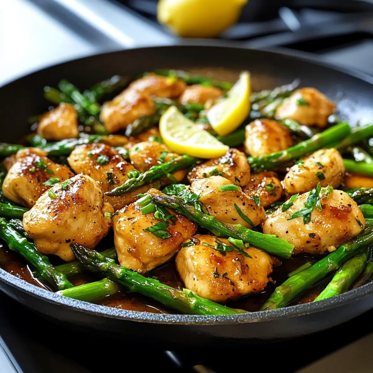 Knoblauchbutter-Hühnchenstücke mit Zitronen-Spargel schnell genießen