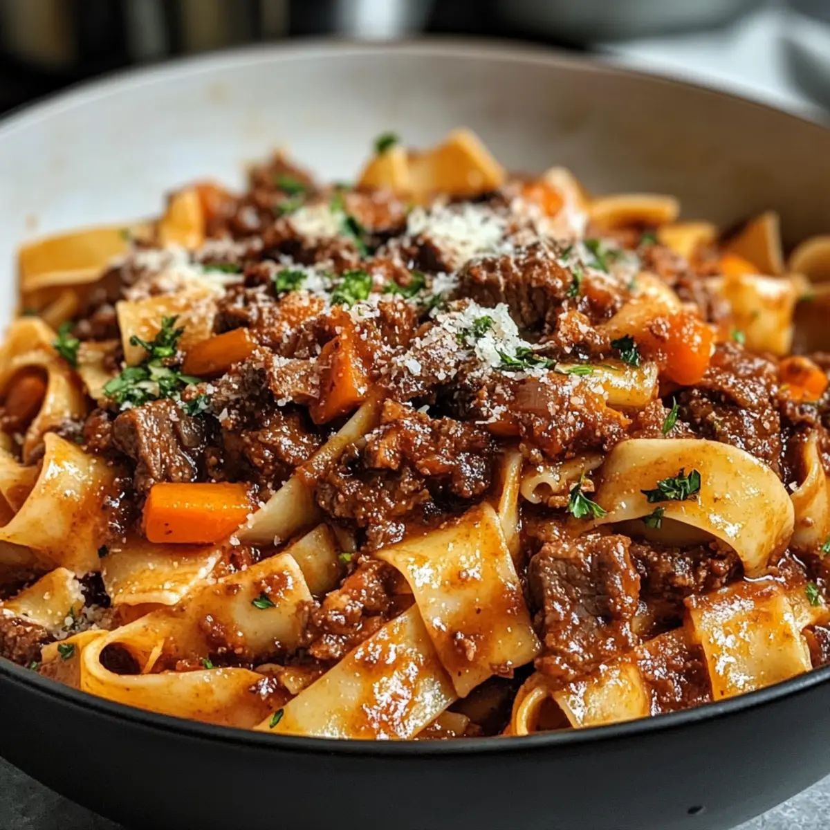 Rindfleisch- und Rotwein-Ragù-Pappardelle: Genuss pur