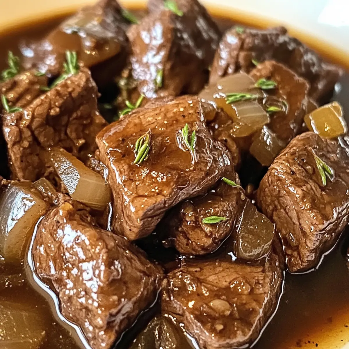 Zartes Rindfleisch mit Balsamico-Zwiebel-Sauce
