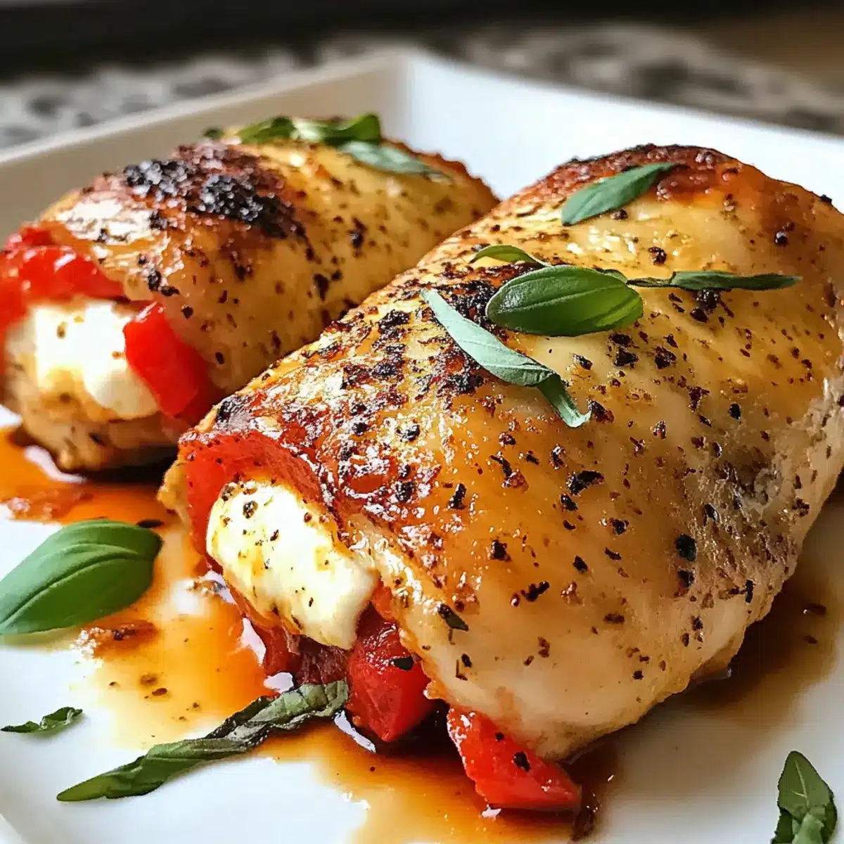 Geröstete Rote Paprika Mozzarella Gefüllte Hähnchen genießen