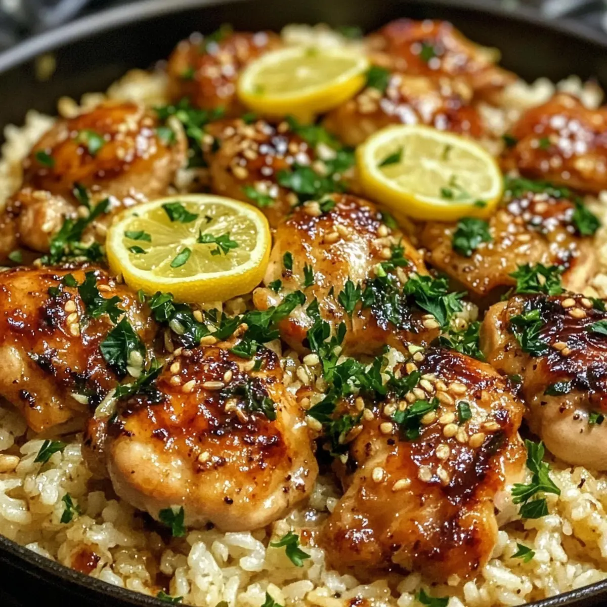 Honigbutterknoblauchhähnchen und Reis für die Seele