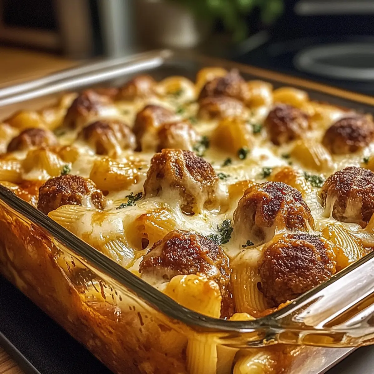 Saftiger Fleischbällchen- und Nudelauflauf für die Familie