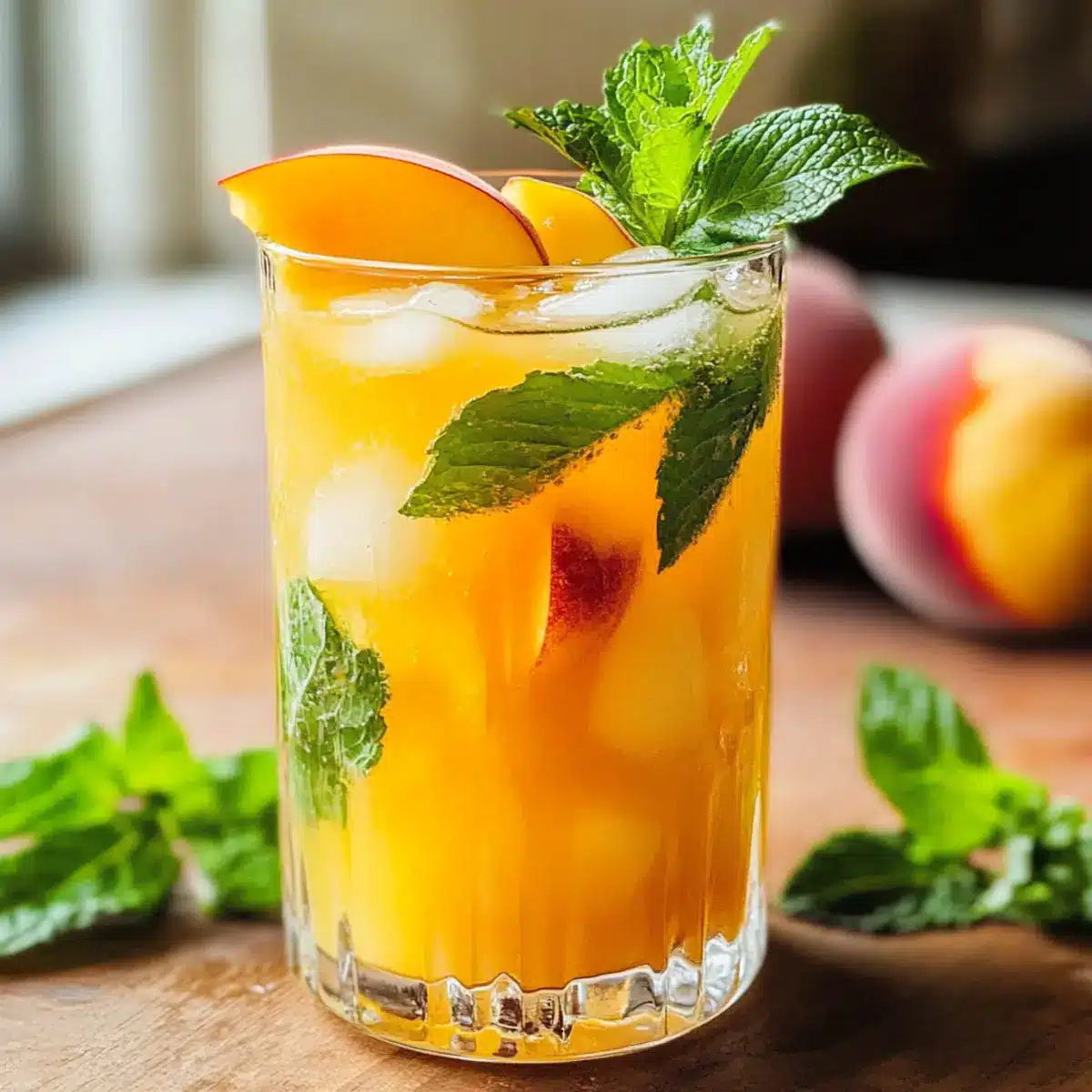 Pfirsich-Limonade mit frischer Minze für den Sommer