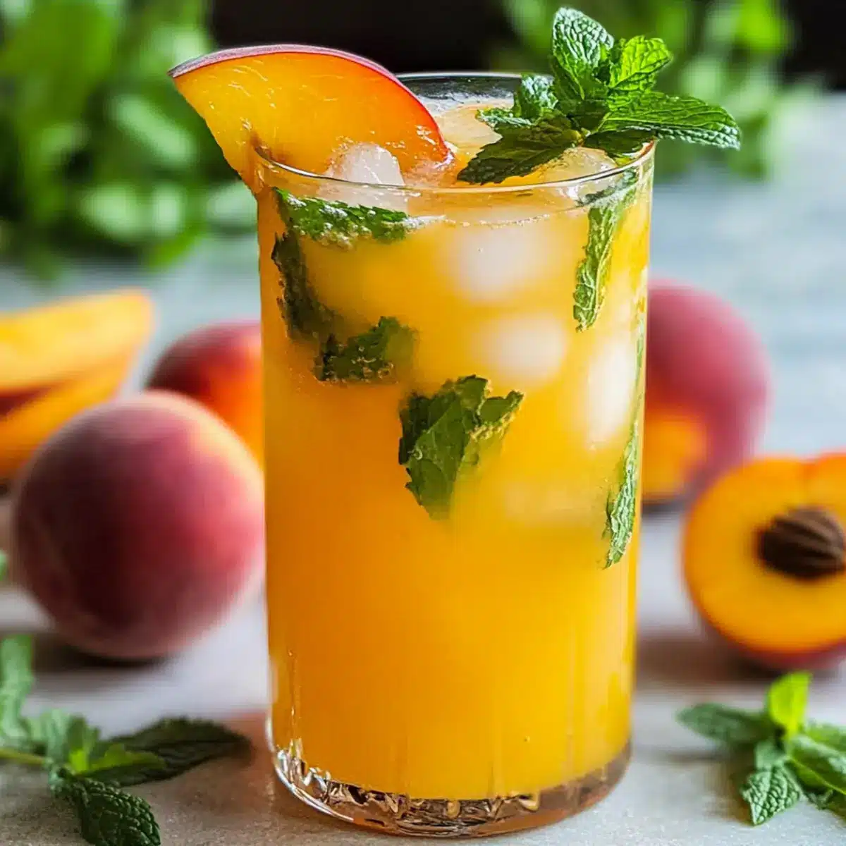 Pfirsich-Limonade mit frischer Minze für heiße Tage