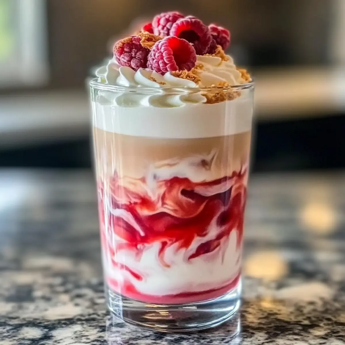 Erfrischender Vanille Himbeer Eiskaffee für warme Tage