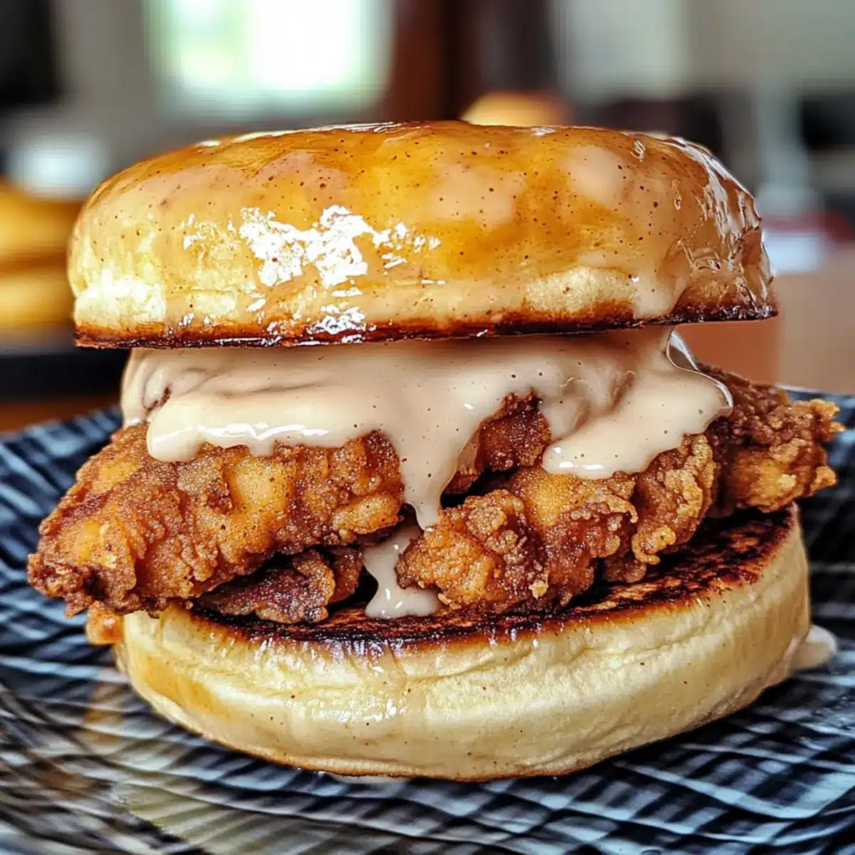 Zimtschnecken frittierter Hühnchen Sandwich Genuss