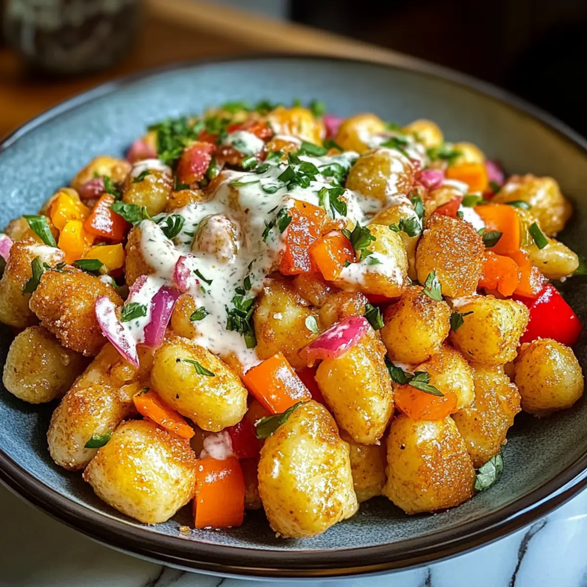 Knuspriger Gnocchi-Salat mit cremigem Dressing
