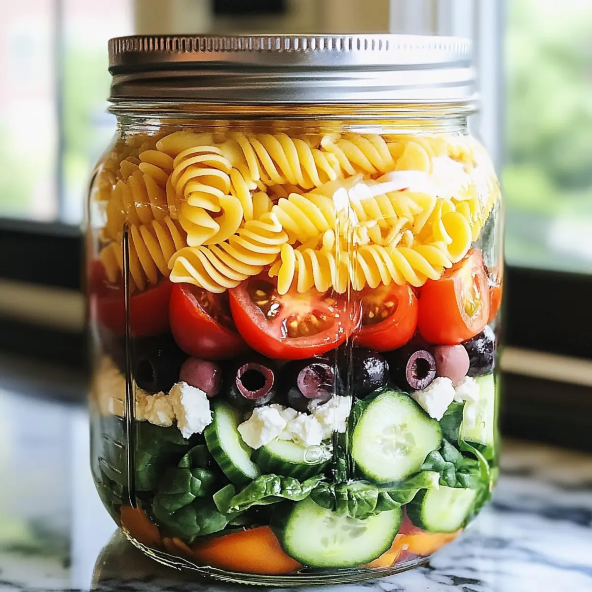 Pasta-Salat-Gläser für einfache Meal Prep Ideen