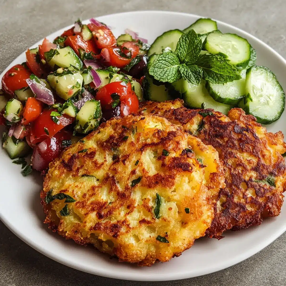 Köstliche Kartoffel-Feta-Puffer mit frischem Salat