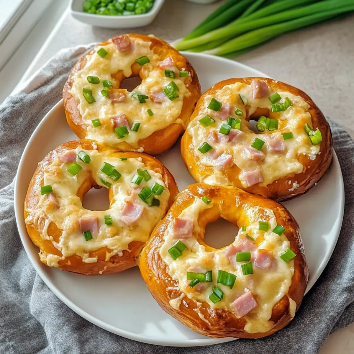 Gebackene Brezeln mit Schinken und Käse leicht gemacht