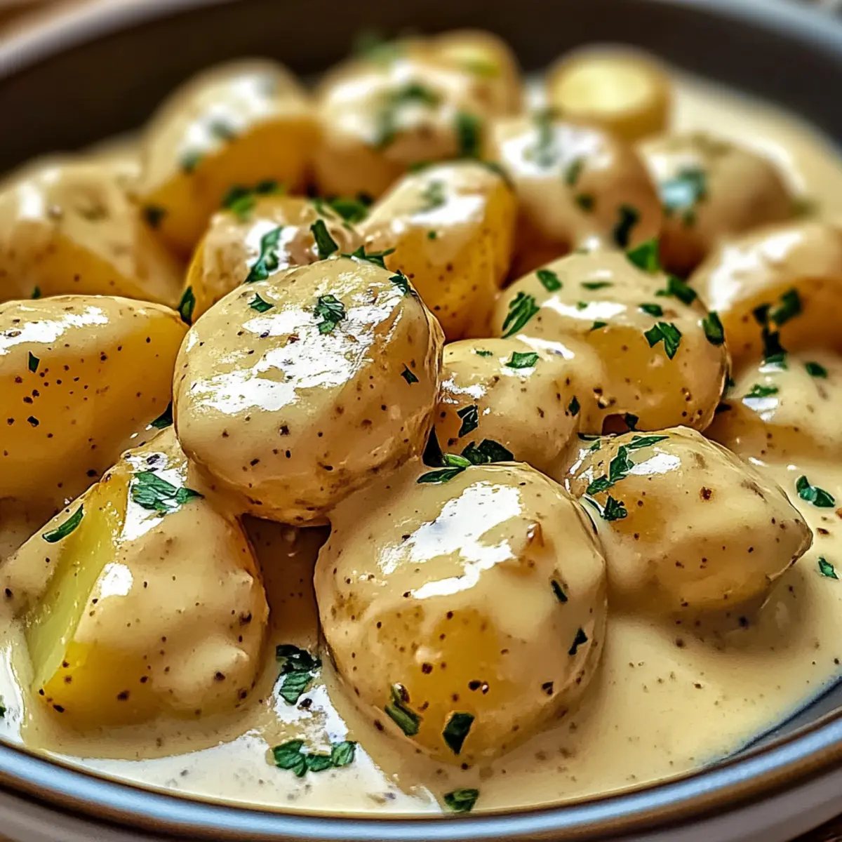 Cremige Knoblauchsoße mit Babykartoffeln schnell gemacht