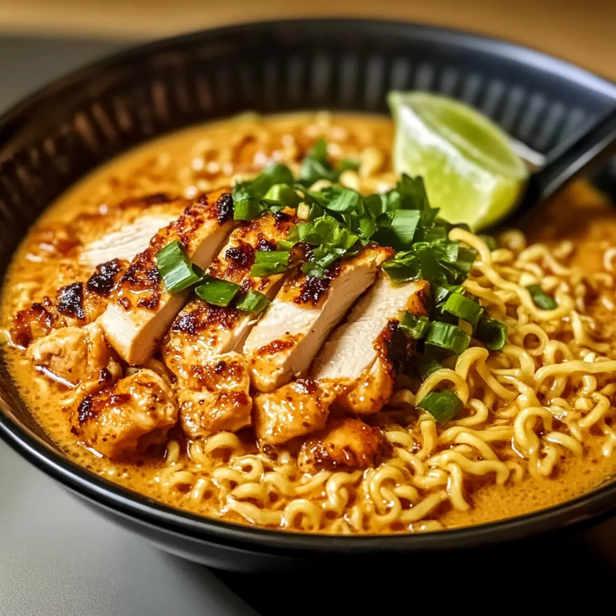 Feurige Hühnchen Ramen mit cremiger Knoblauchsoße