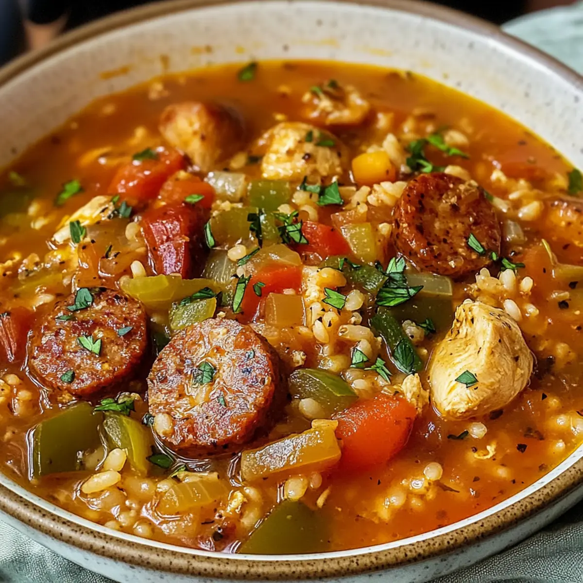 Würzige Jambalaya-Suppe mit Andouille-Wurst Rezept