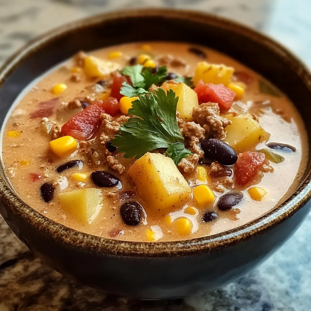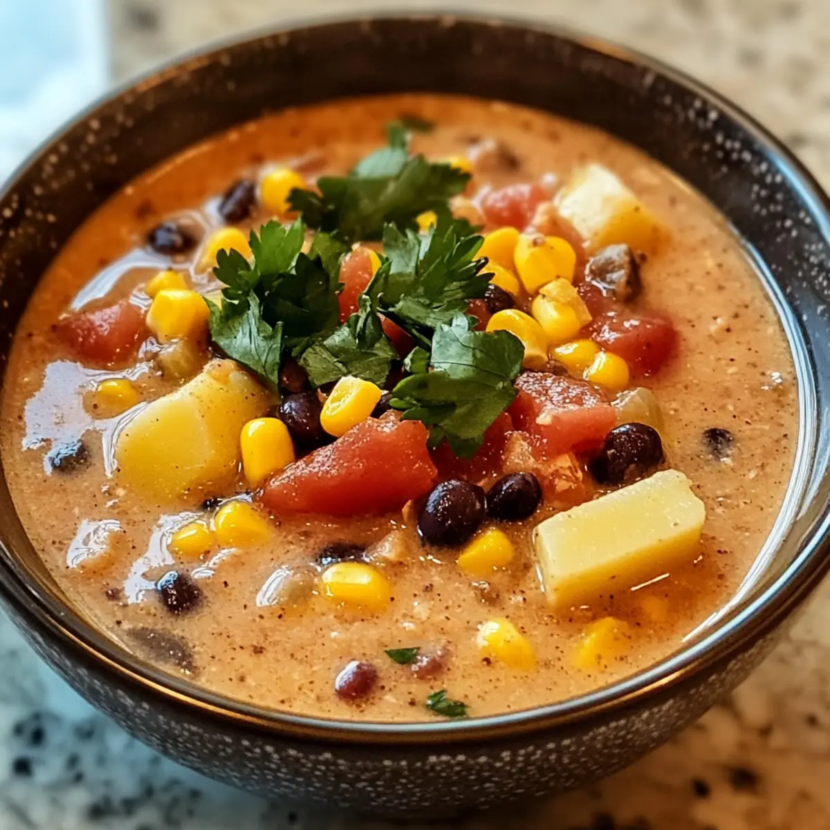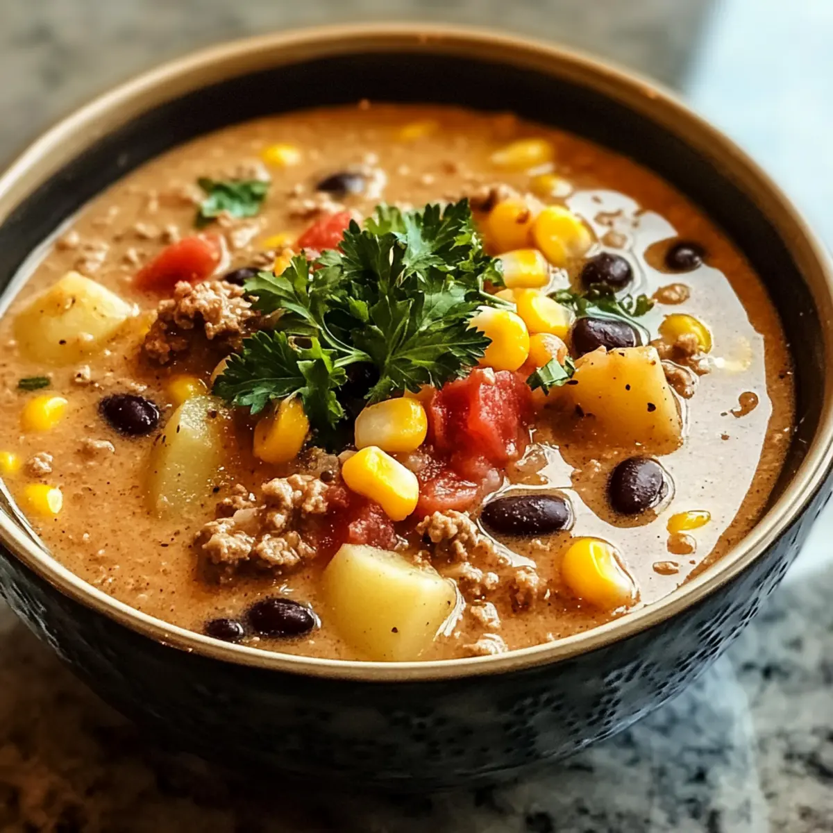Herzhaft und Aromatisch: Die cremige Cowboy-Suppe kombiniert die besten Tex-Mex-Aromen in einer einzigen, köstlichen Schüssel.