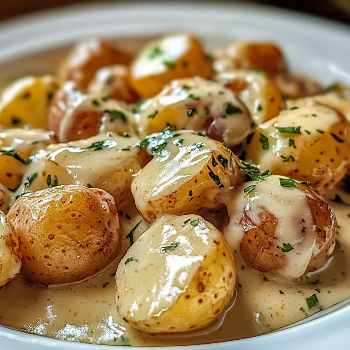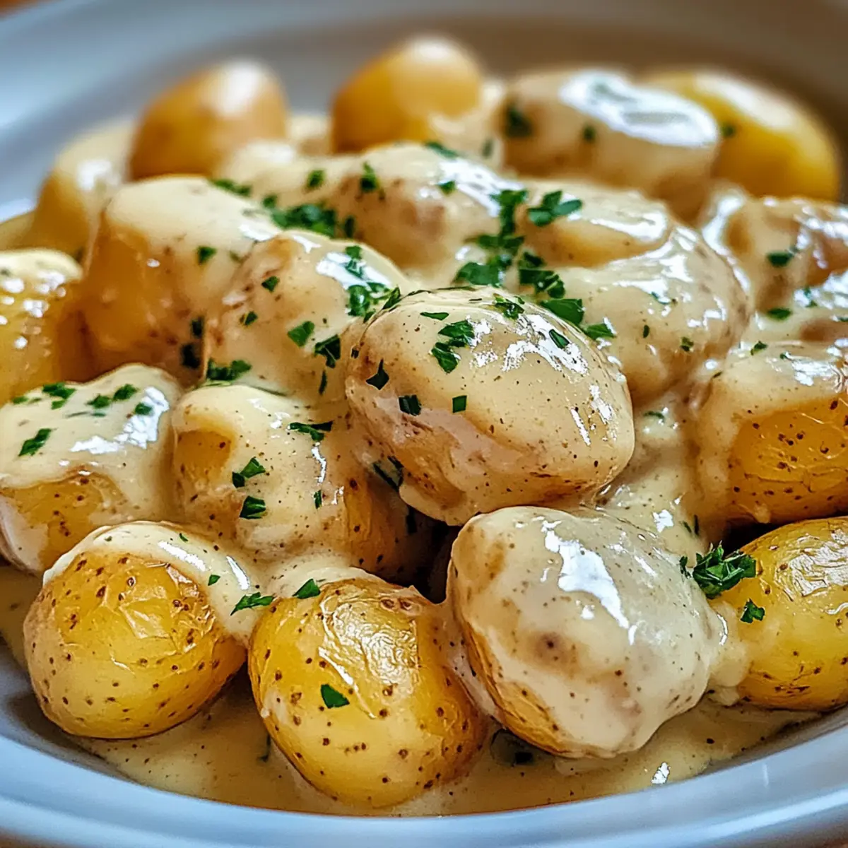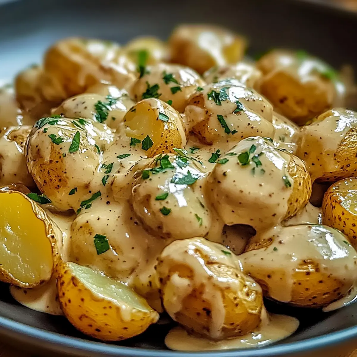Cremige Knoblauchsoße mit Babykartoffeln schnell gemacht