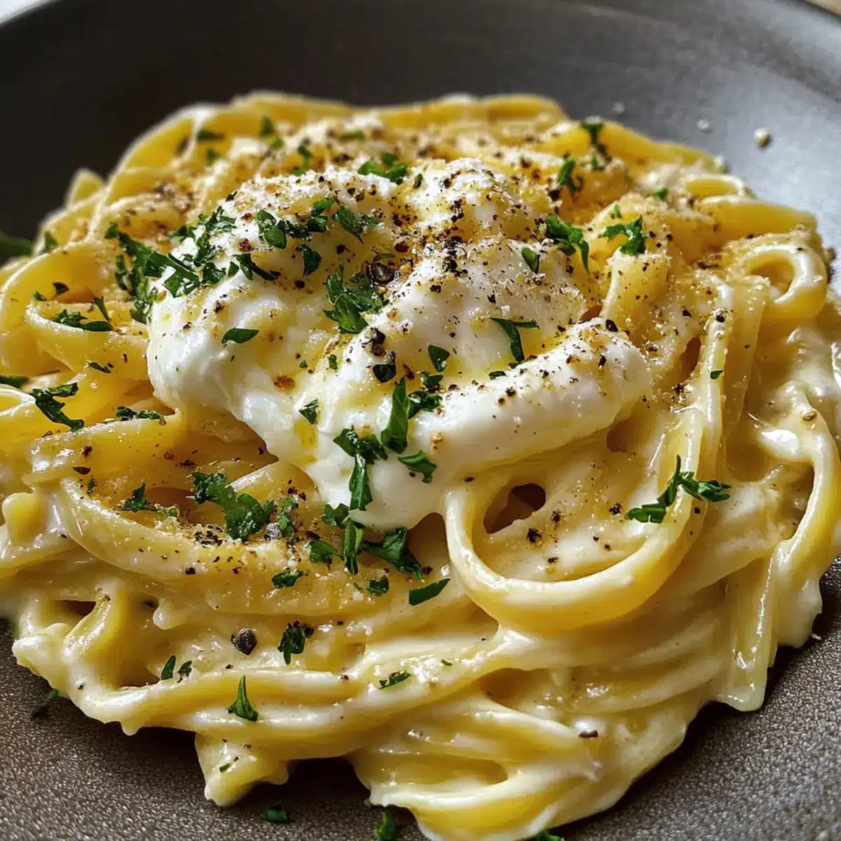 Eines Abends, als ich nach einem langen Tag nach Hause kam, brauchte ich einfach ein Gericht, das mich umhüllt wie eine warme Umarmung. Die cremige Pasta mit Burrata war die Antwort. In nur wenigen einfachen Schritten verwandelt sich diese raffinierte Kombination aus zartem Teig und schmelzendem, cremigen Käse in ein himmlisches Abendessen, das perfekt für den hektischen Alltag geeignet ist. Diese schnelle, vegetarische Spezialität kombiniert aromatischen Knoblauch und süße, karamellisierte Zwiebeln und verleiht jedem Bissen einen Hauch von Italien. Das Beste: Sie ist in weniger als 30 Minuten zubereitet und benötigt nur Zutaten, die man meist ohnehin im Kühlschrank hat. Bist du bereit, deinem nächsten Abendessen einen besonderen Touch zu verleihen? Lass uns gemeinsam in die Welt dieser köstlichen Pasta eintauchen!