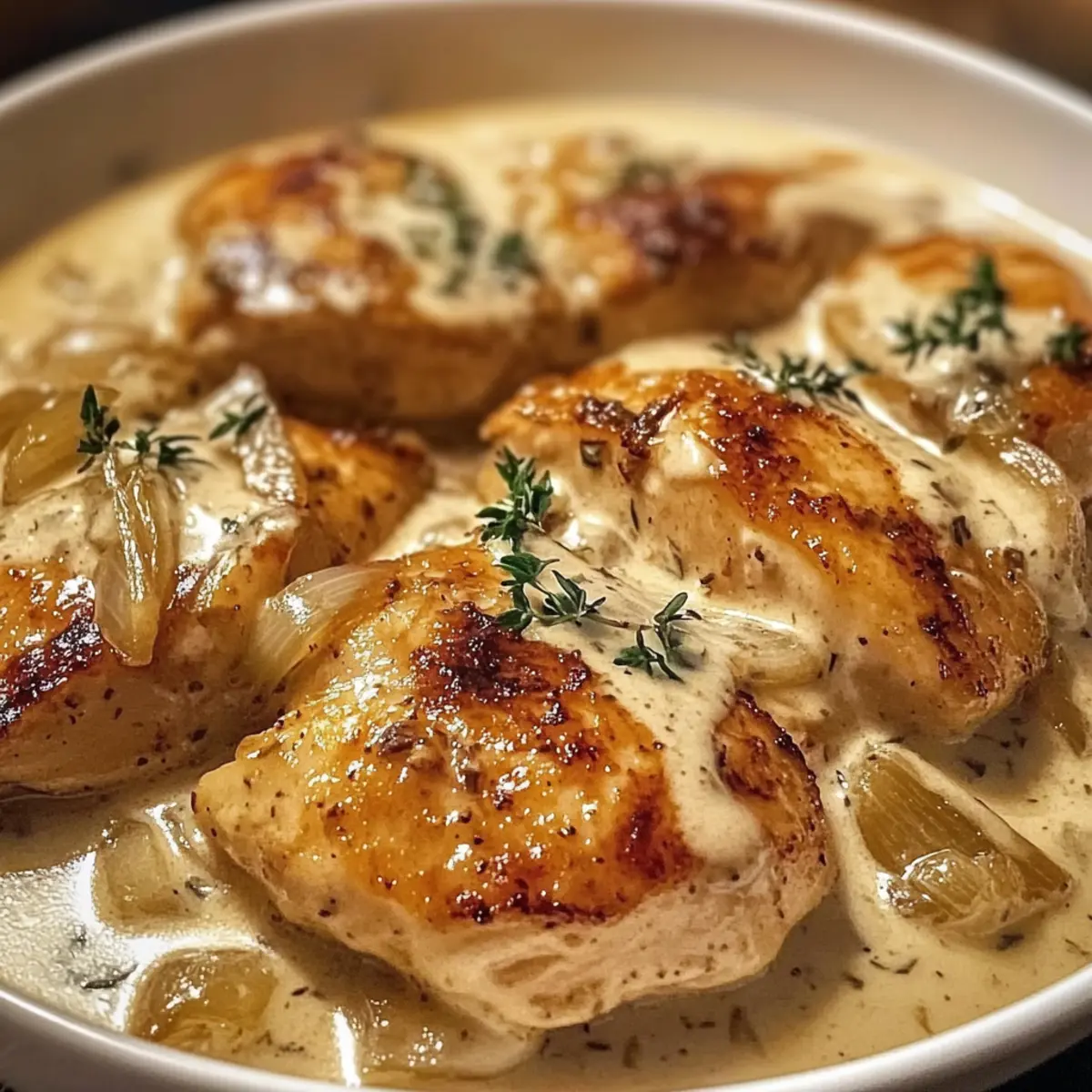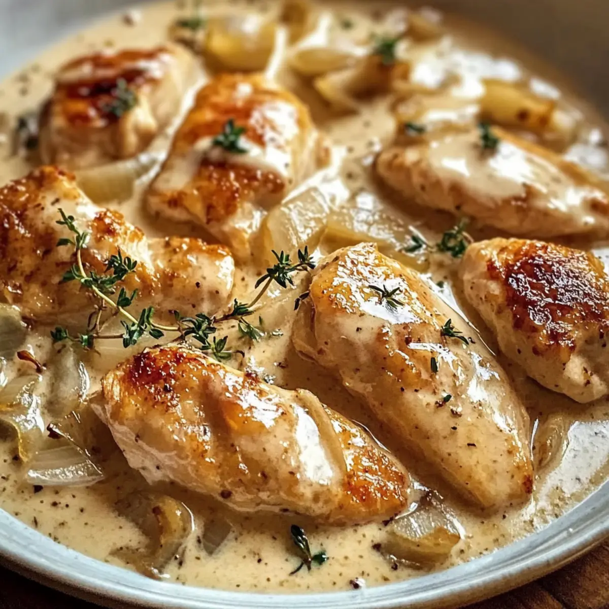Cremiges Zwiebel-Sahne-Hähnchen für ein gemütliches Dinner
