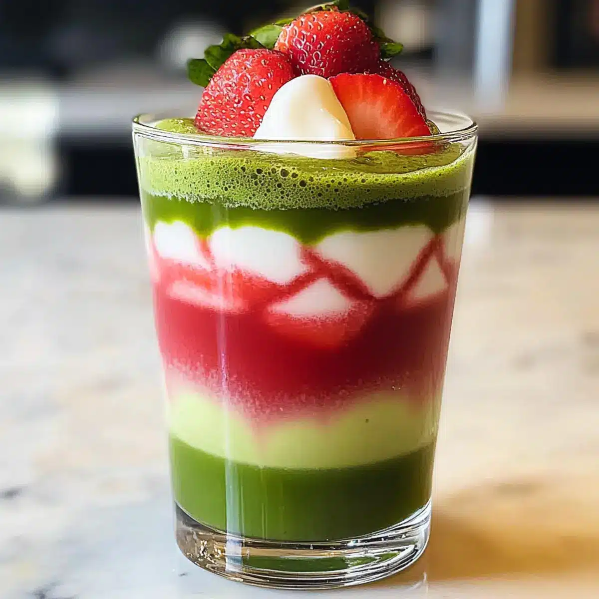 Eisige Erdbeer-Matcha-Latte für heiße Tage