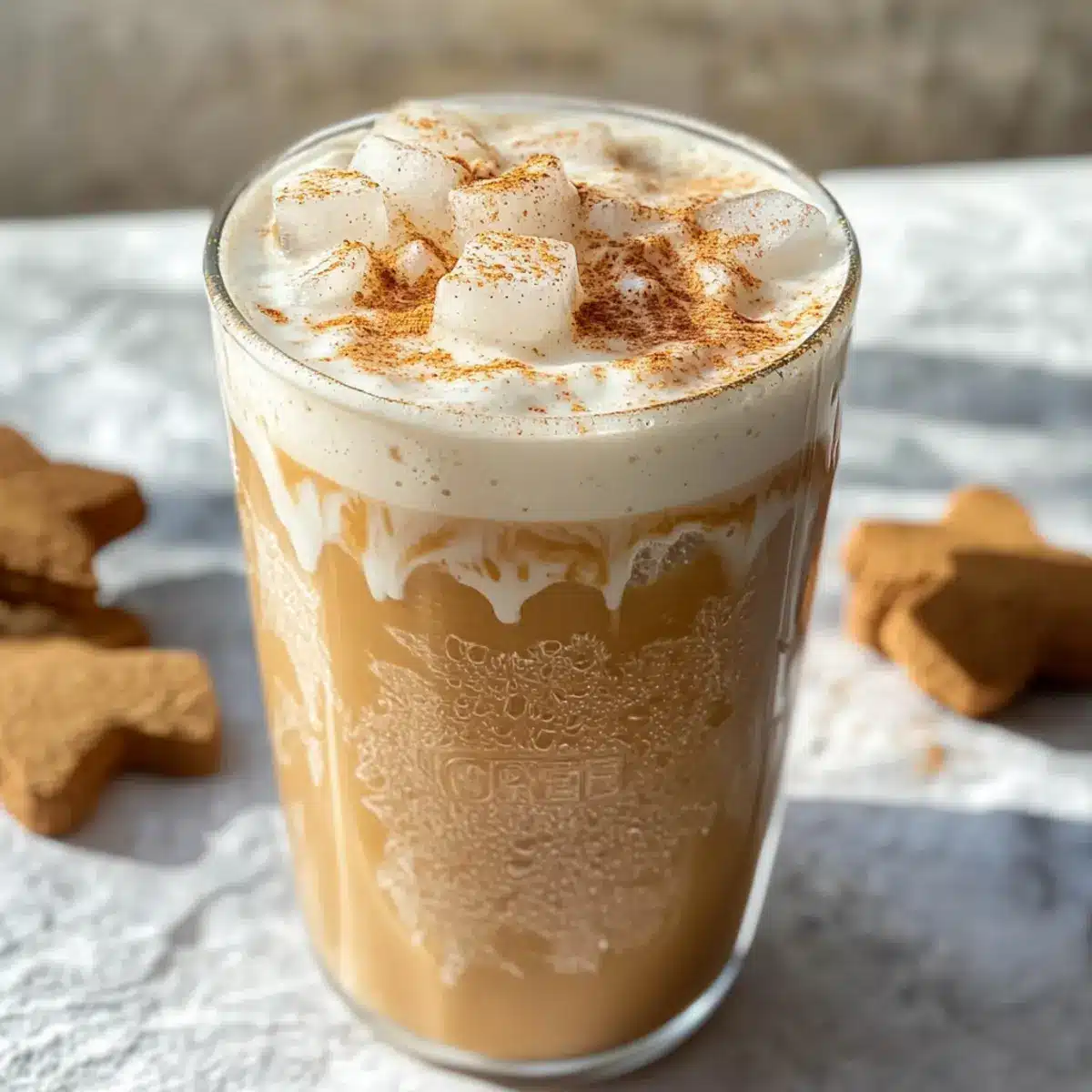 Gieße den aufgeschäumten Lebkuchen-Hafermilch-Mix über die eisige Chai-Mischung in der Tasse. Streue eine Prise Kürbiskuchen-Gewürz oder eine Mischung aus Zimt und Muskatnuss obenauf, um das Aroma zu intensivieren. Dein Eisiger Lebkuchen Hafermilch Chai Latte ist nun bereit, serviert zu werden – genieße den festlichen Geschmack!