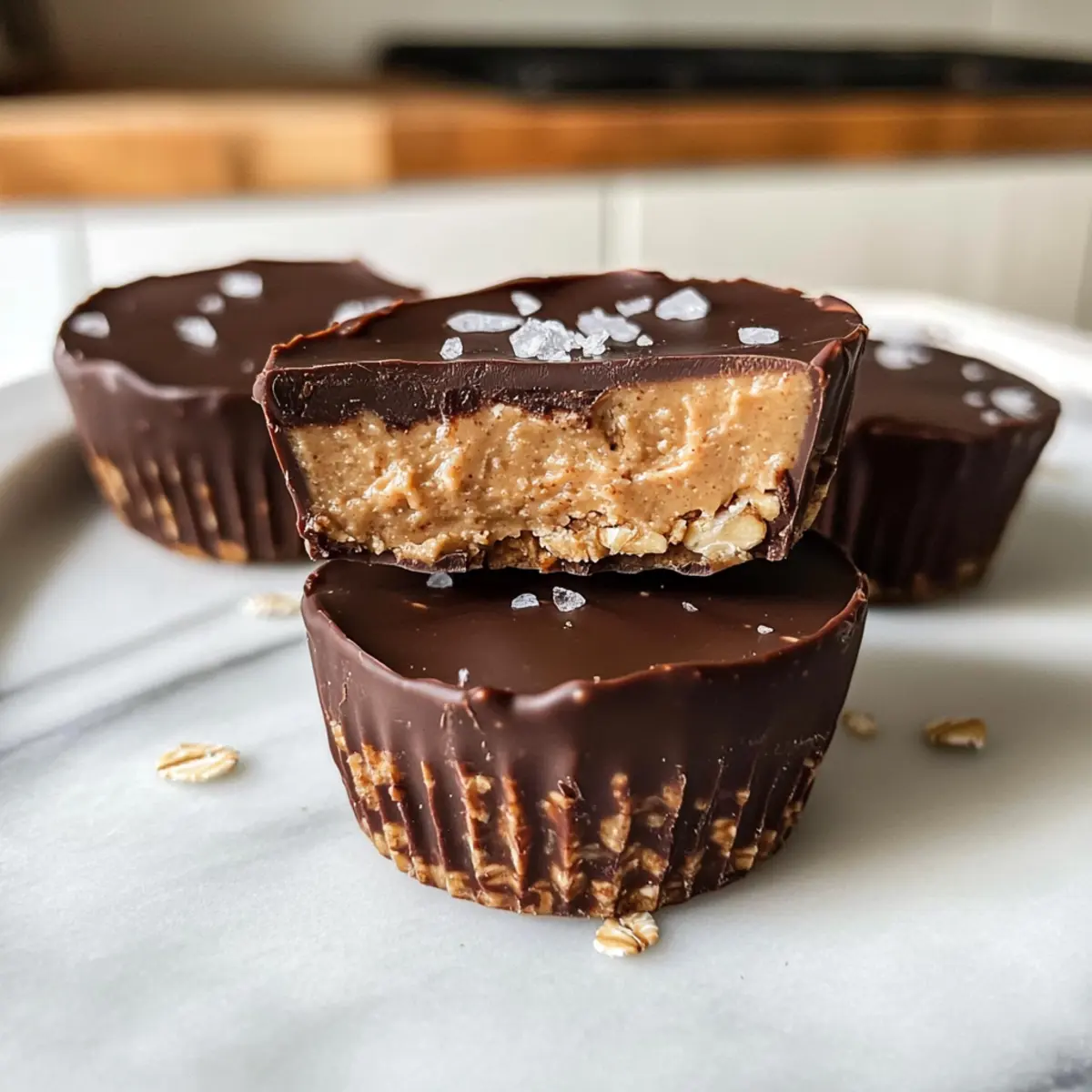 Sobald die Schokolade fest ist, nimm die Erdnussbutter Haferbecher vorsichtig aus den Silikonformen. Wenn gewünscht, bestreue sie mit etwas flockigem Meersalz für den ultimativen Geschmack. Lass sie kurz stehen, bevor du sie servierst oder genießt.