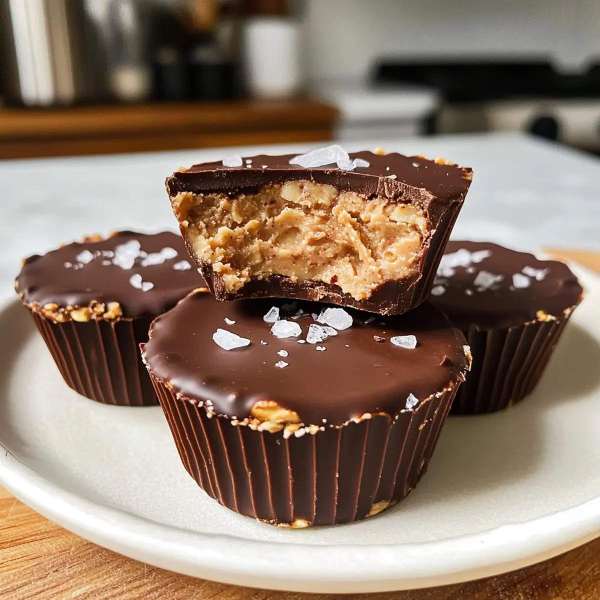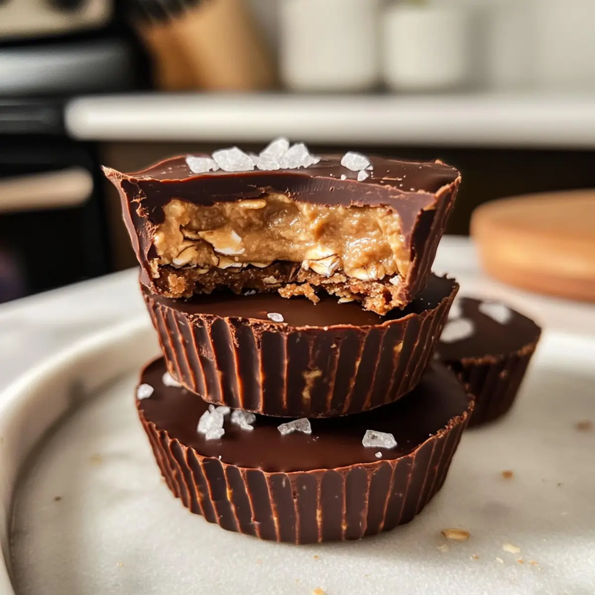- Nimm die Erdnussbutter Haferbecher vorsichtig aus den Silikonformen und bestreue sie mit flockigem Meersalz.
