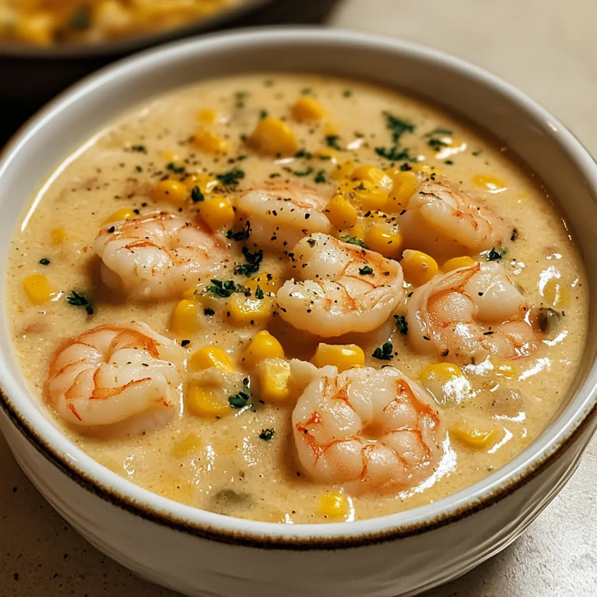 Cremiger Genuss: Diese Garnelen- und Maissuppe bietet eine perfekte Balance aus süßem Mais und zarten Garnelen, die zusammen eine unvergessliche Geschmacksexplosion erzeugen.