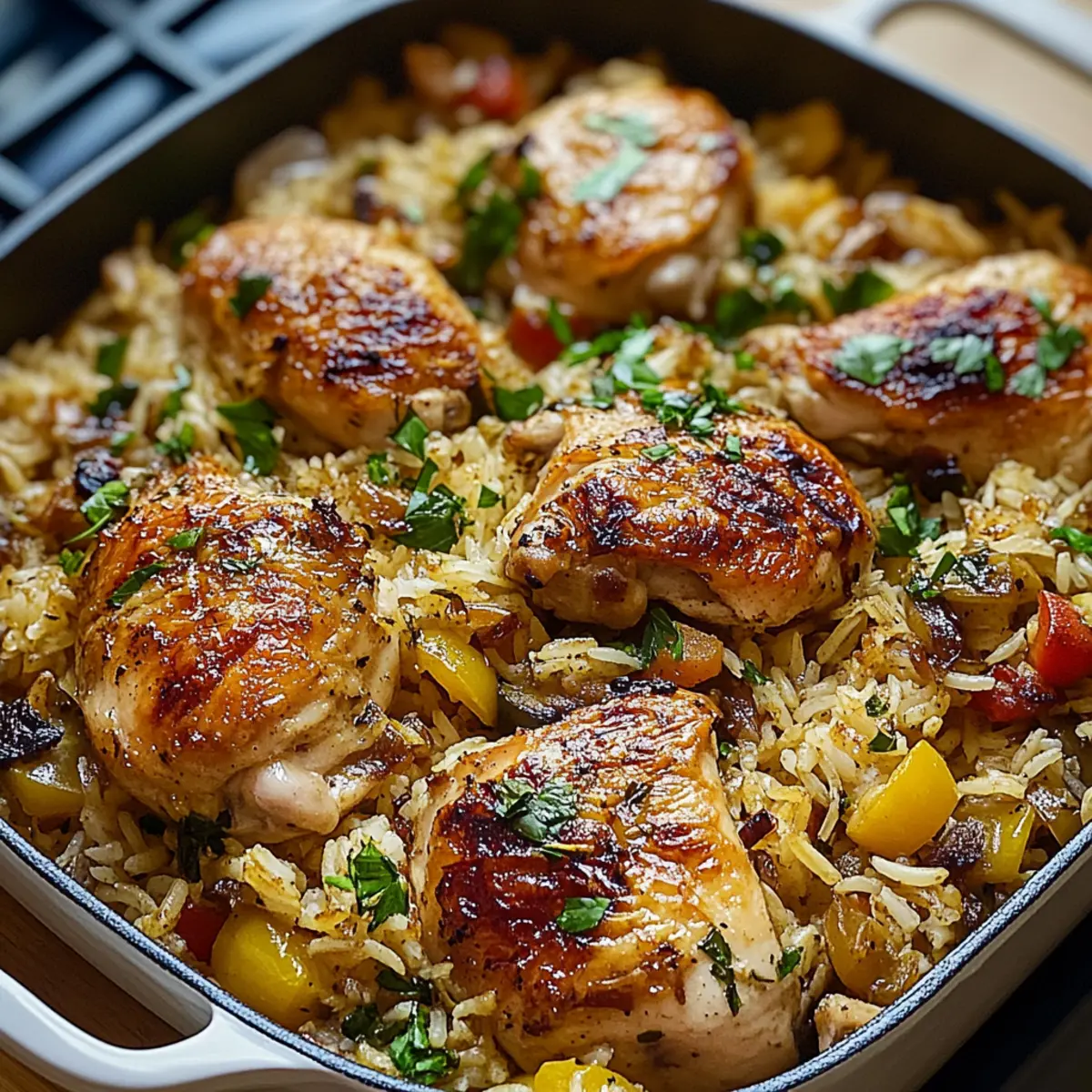 Gebackenes Hühnchen und Reis: Dein perfektes One-Pot Gericht