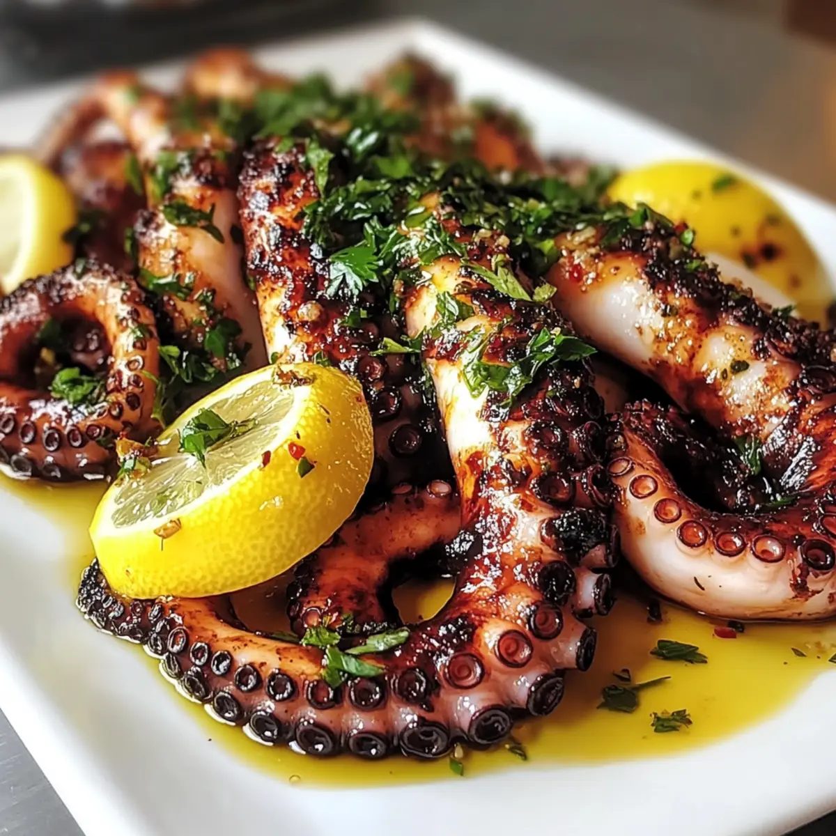 Hätten Sie gewusst, dass der perfekte Grillabend mit einem zarten, gegrillten Oktopus beginnen kann? Dieses Rezept für Gegrillten Oktopus mit mediterraner Marinade verwandelt jeden Bissen in ein kleines Fest für die Sinne. Die Kombination aus erfrischender Zitrone, aromatischem Knoblauch und bester mediterraner Gewürze gibt dem Oktopus nicht nur einen unwiderstehlichen Geschmack, sondern macht ihn auch zu einem proteinreichen Genuss, der Ihre Gäste begeistern wird. Perfekt für entspanntes Kochen oder das nächste Dinner-Event – schnell zubereitet und dennoch beeindruckend! Schon neugierig, wie Sie diesen Genuss ganz einfach selbst zaubern können?