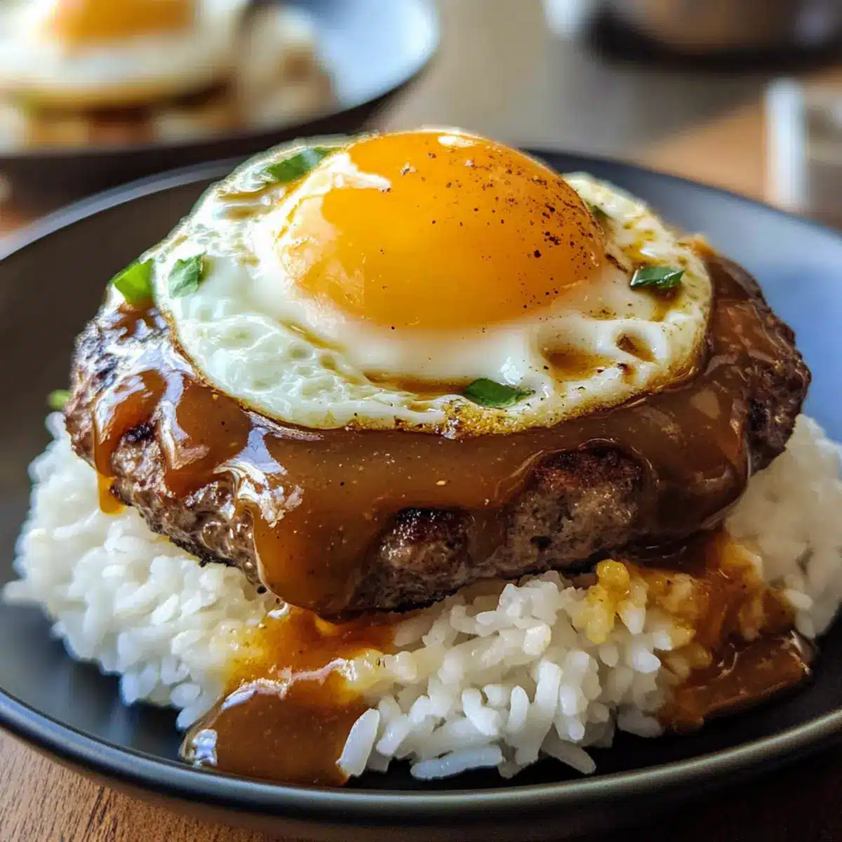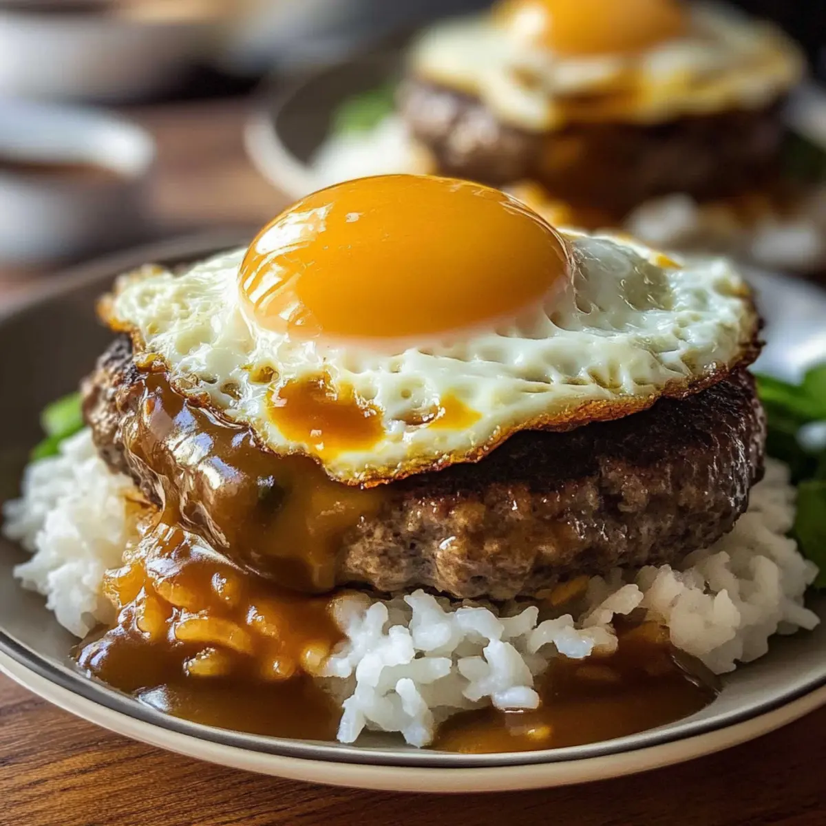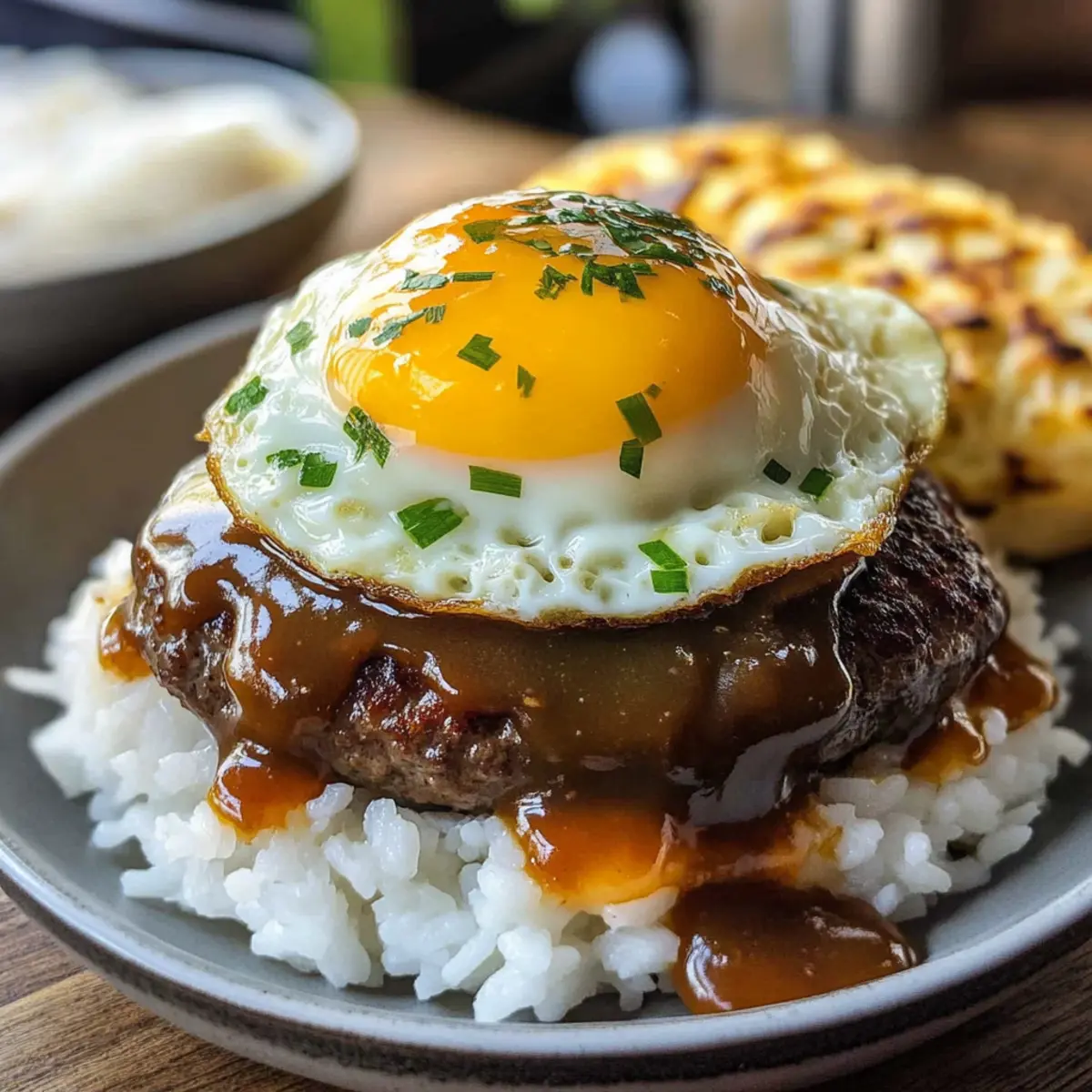 Ich empfehle, eine breite Schüssel oder einen tiefen Teller zu verwenden, um das ganze Gericht zu präsentieren. Dadurch kannst du die Schichten aus Reis, Patty, Ei und Sauce wunderbar zur Geltung bringen und gleichzeitig das Gefühl eines herzlichen, genussvollen Essens vermitteln.
