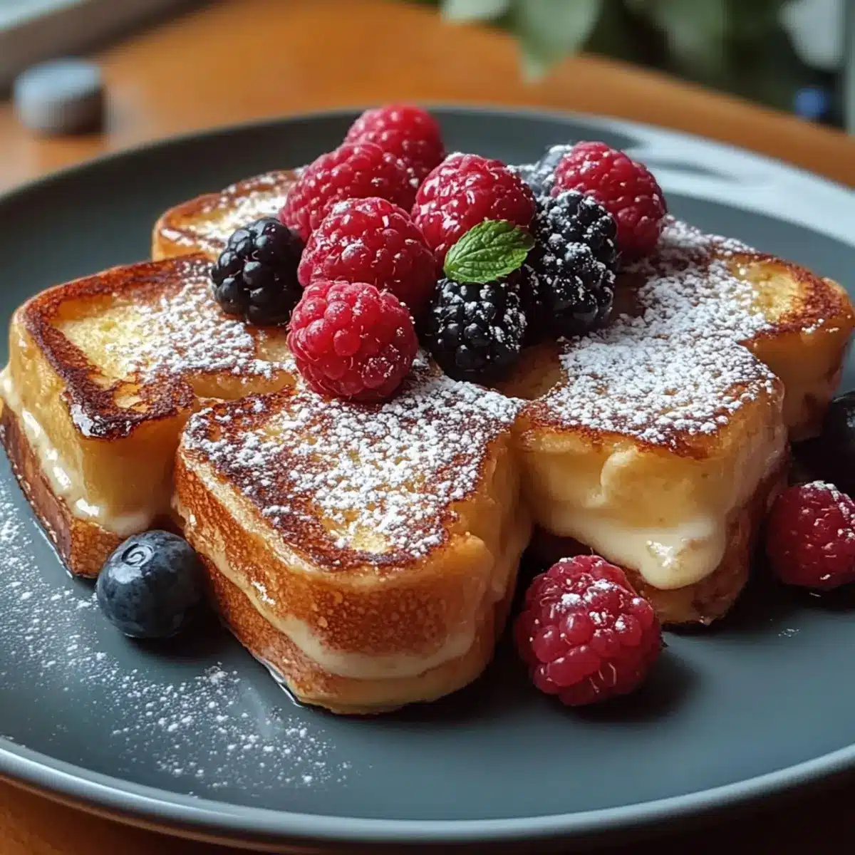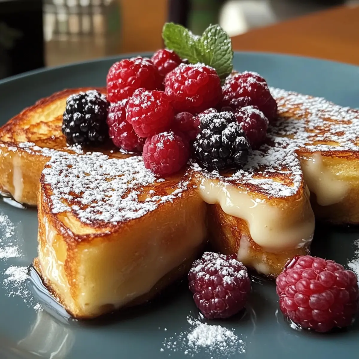 - Frische Beeren: Die fruchtige Frische von Erdbeeren oder Heidelbeeren ergänzt die Süße des French Toast und bringt Farbe auf den Teller.