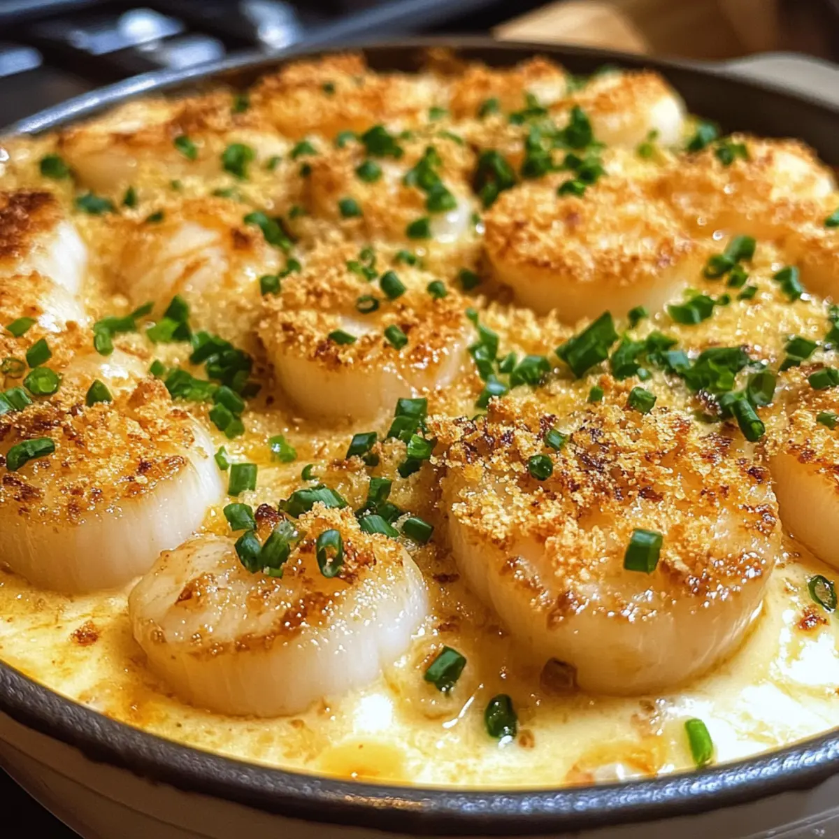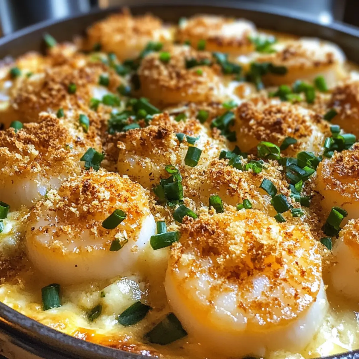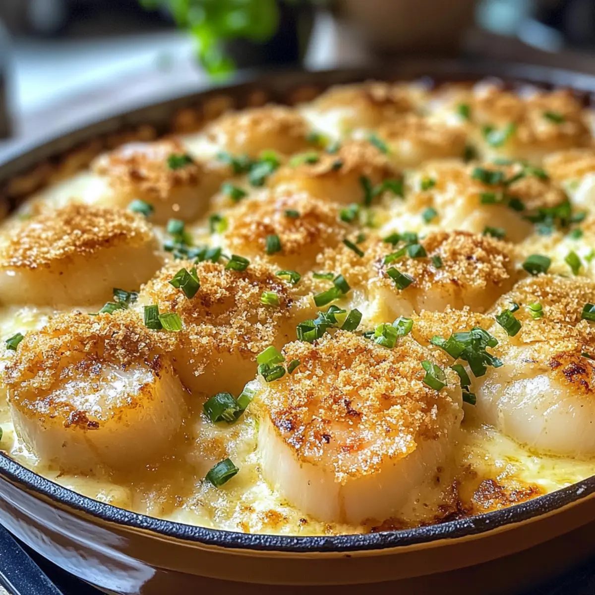 Herzhafte Jakobsmuscheln und Garnelen Gratin für Genießer