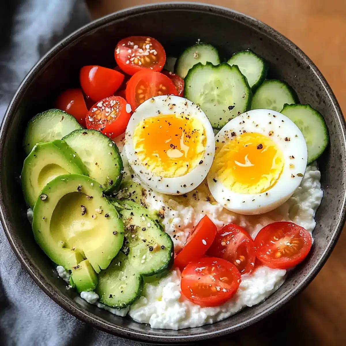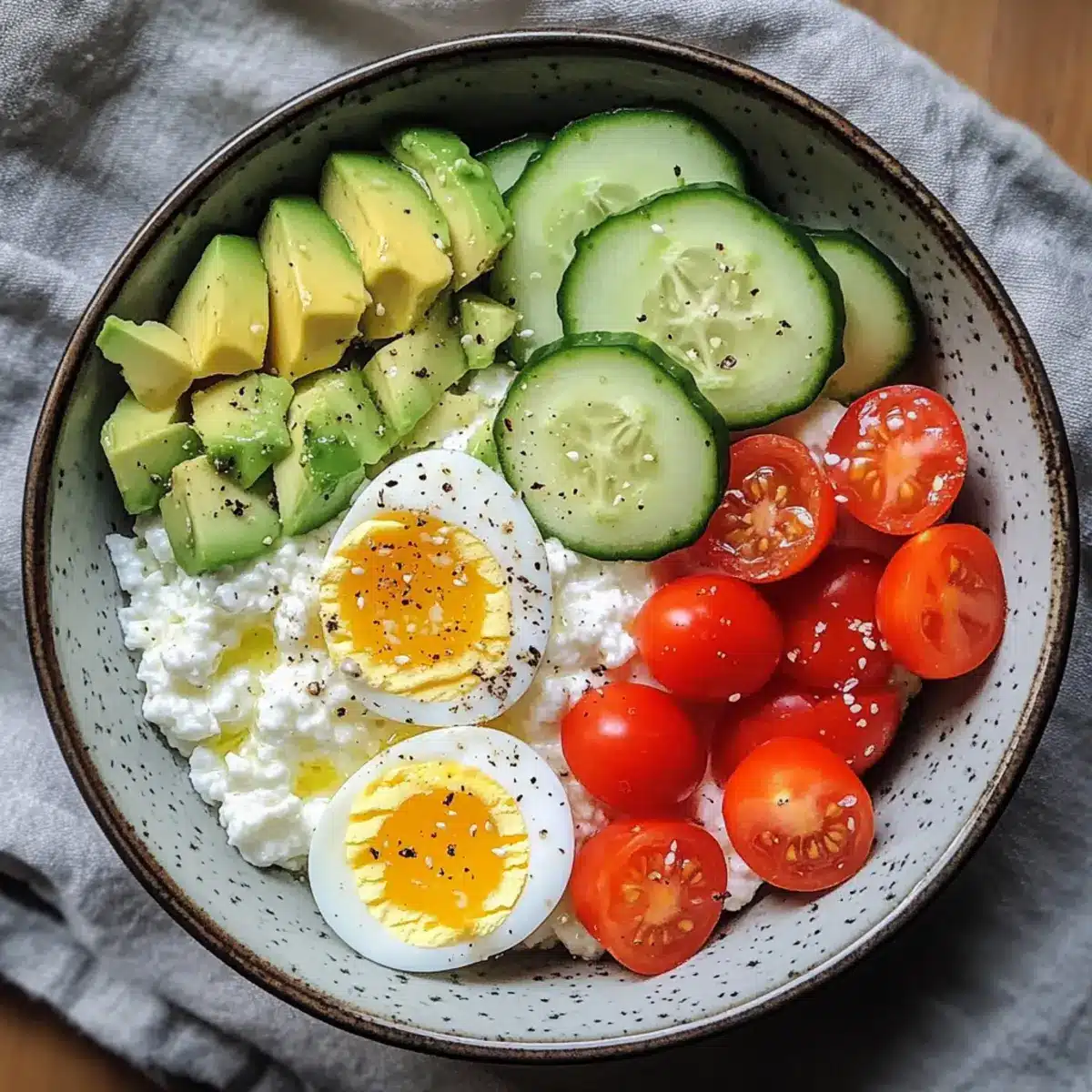 Jede Zutat, die ich in meine Schüssel lege, verspricht ein Geschmackserlebnis, das so einfach wie genial ist! Diese Hüttenkäse Schüssel ist nicht nur ein Fest für die Sinne, sondern auch ein wahrer Nährstoffkraftpaket. Die Kombination aus cremigem, fettfreiem Hüttenkäse, knackigen Gurken, saftigen Cherrytomaten und der perfekten Avocado als Topping bringt Frische und Vitalität in dein Frühstück, Mittagessen oder als gesunder Snack zwischendurch. Und das Beste ist: Sie ist blitzschnell zubereitet und lässt sich nach deinem Geschmack anpassen! Würdest du lieber eine süße oder herzhafte Variante ausprobieren? Lass uns gemeinsam in die leckere Welt der Hüttenkäse Schüssel eintauchen!