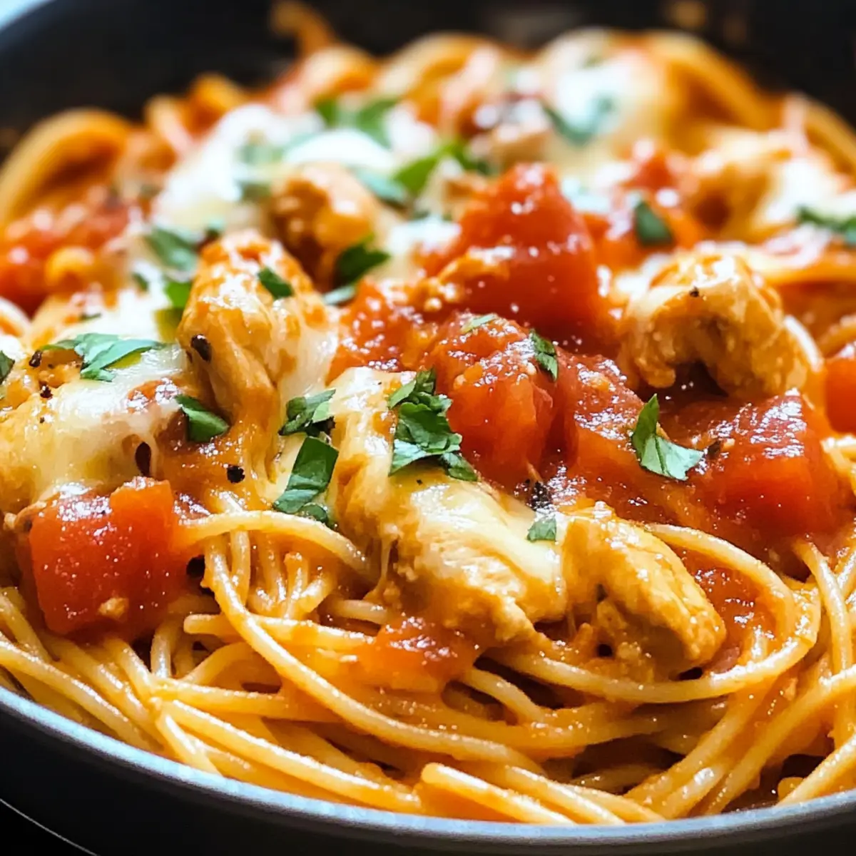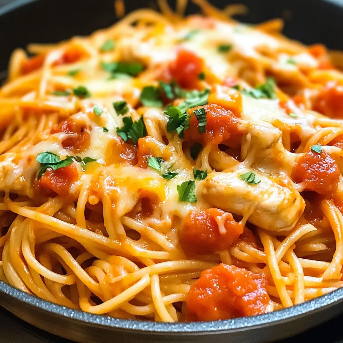 Verleihen Sie Ihrem Abendessen mit dieser köstlichen Käse Rotel Hähnchen Spaghetti eine ganz neue Dimension!