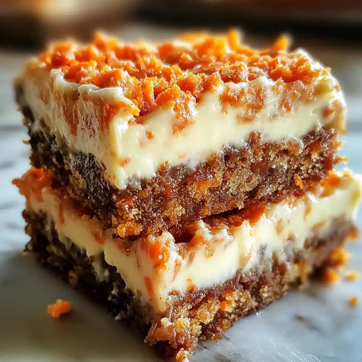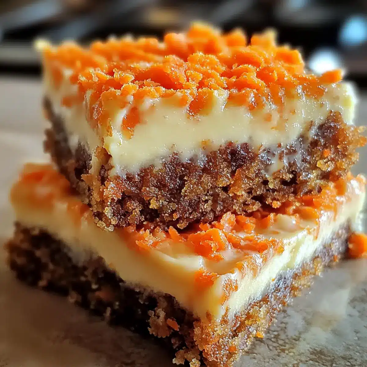 Diese Karottenkuchen Frischkäse Riegel sind perfekt für die Vorausplanung von Mahlzeiten! Sie können die frisch geriebenen Karotten bis 3 Tage im Voraus vorbereiten; einfach in einem luftdichten Behälter im Kühlschrank aufbewahren, um ein Austrocknen zu verhindern. Auch die Frischkäse-Mischung kann bis zu 24 Stunden vorher zubereitet werden; einfach in Frischhaltefolie einwickeln, um Qualität und Frische zu bewahren. Wenn du bereit bist, die Riegel zu backen, vermische den Teig mit den vorbereiteten Karotten, schichte die Frischkäse-Mischung darauf und backe sie wie im Rezept beschrieben. So hast du schnell ein köstliches Dessert, das von Familie und Freunden geliebt wird!