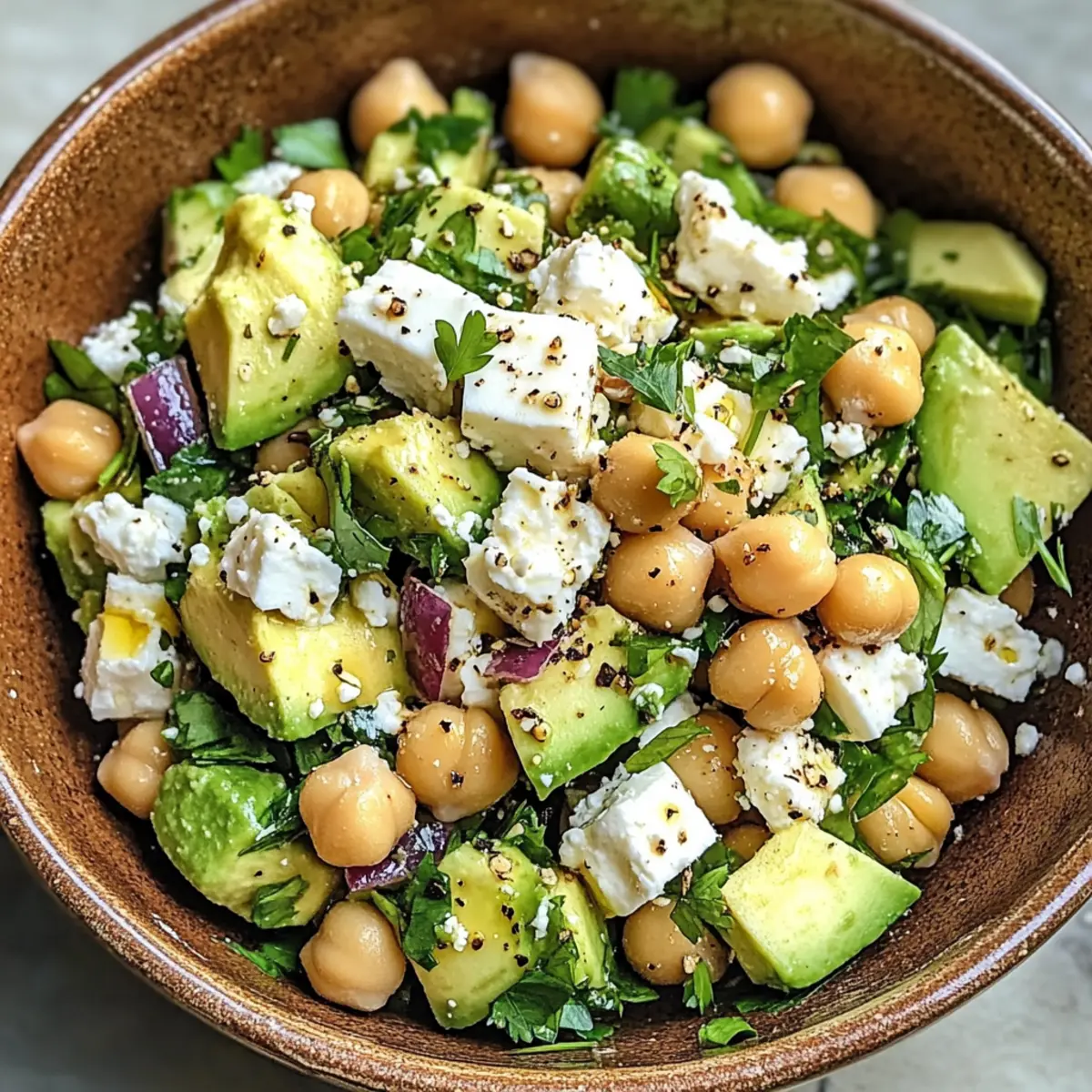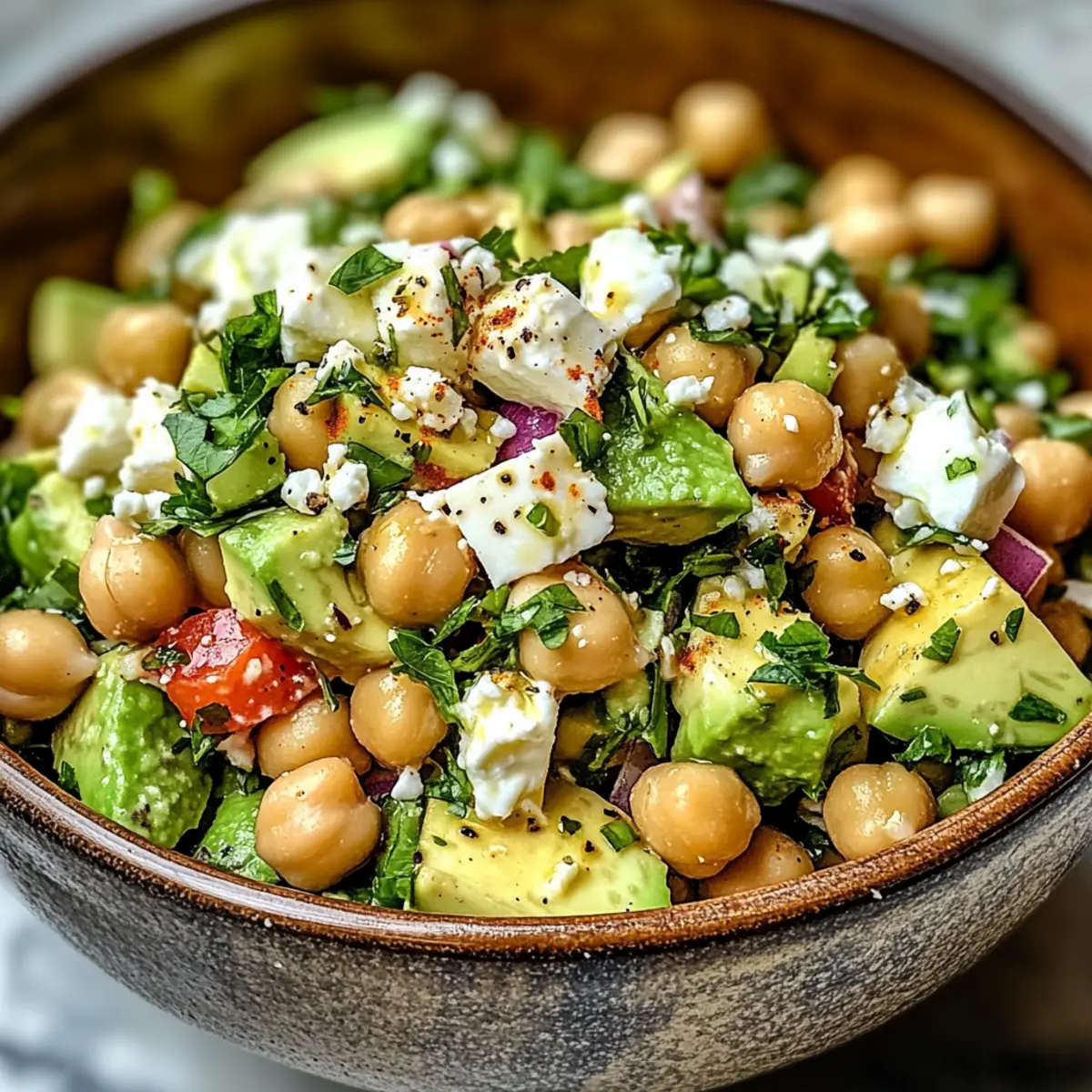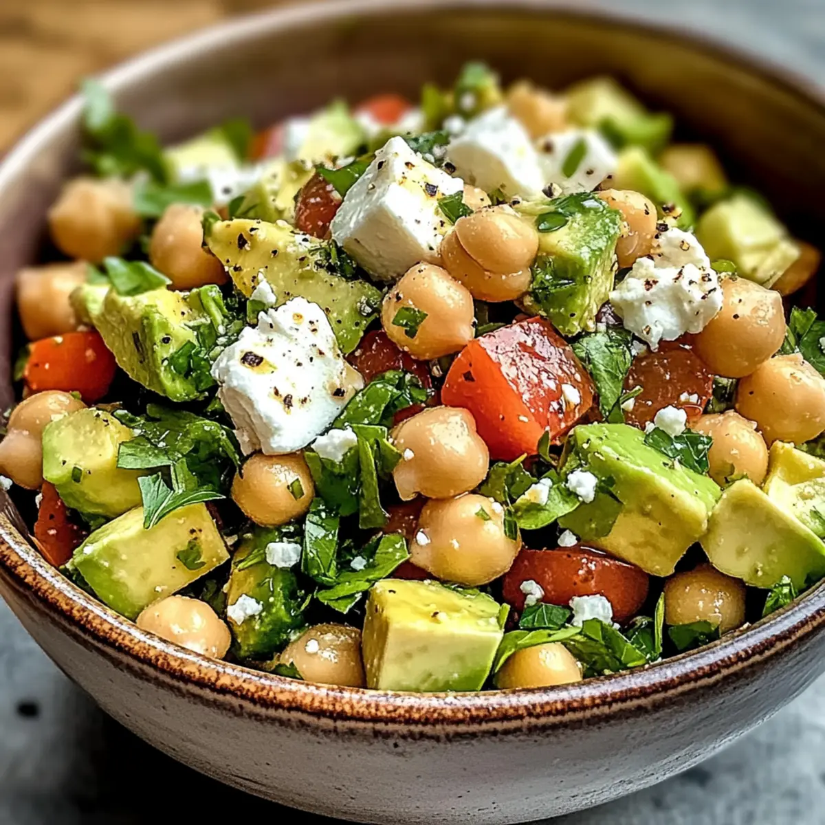 Aromatische Kräuter: Verwende frische Kräuter wie Petersilie und Minze, um den Geschmack und die Frische des Kichererbsen Feta Avocado Salats zu intensivieren; sie machen einen großen Unterschied!