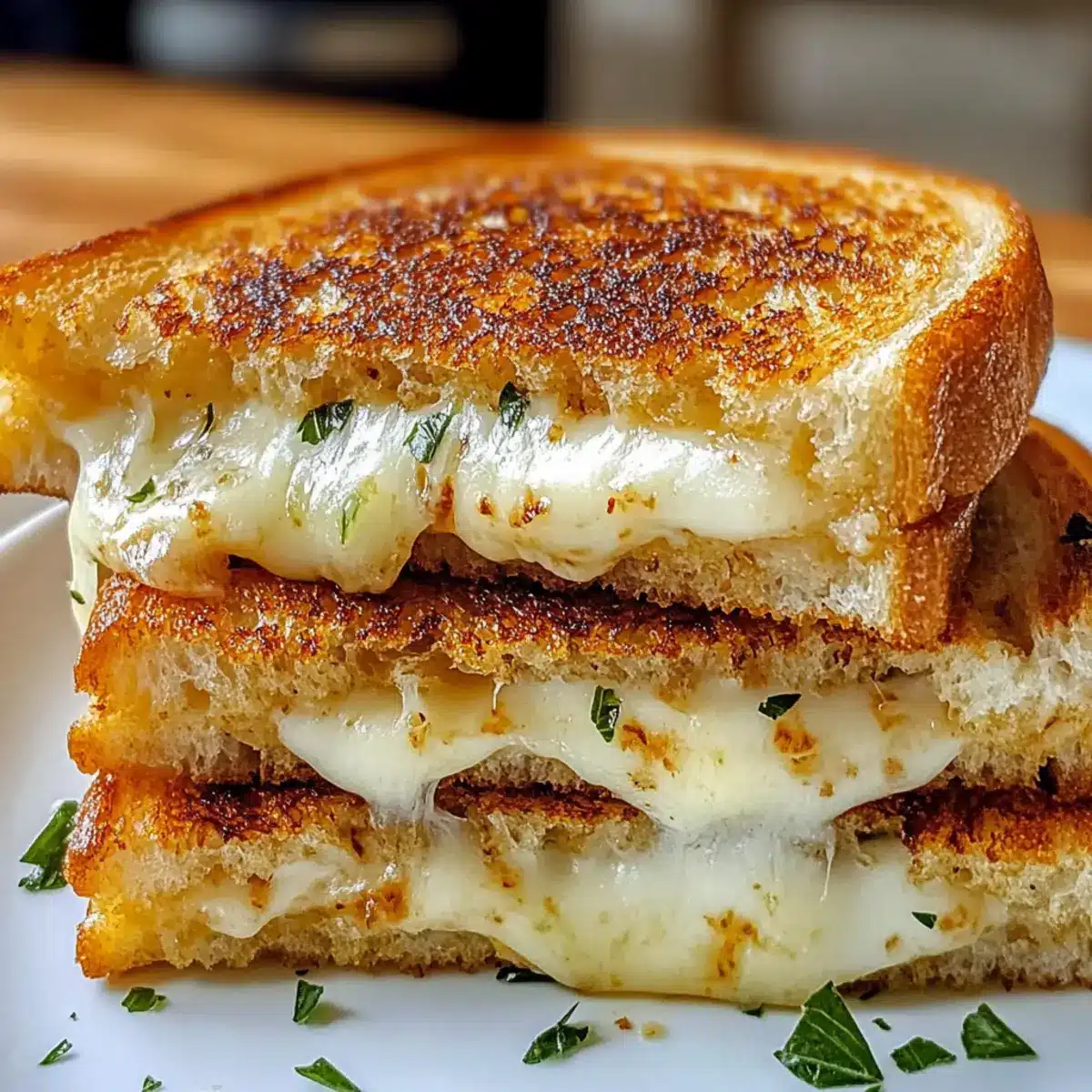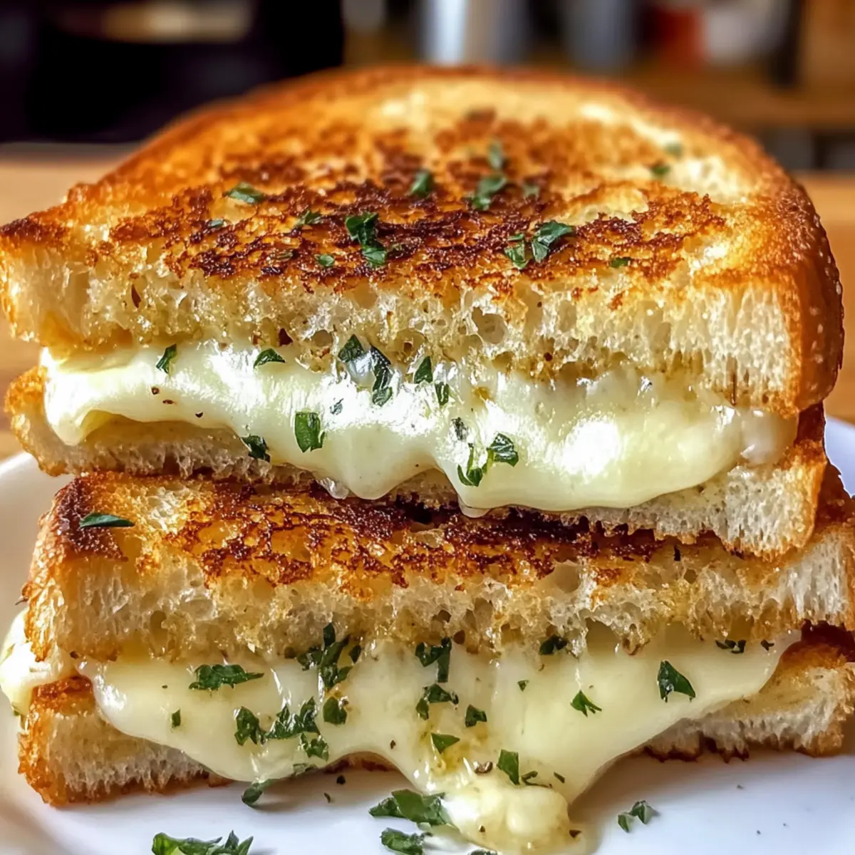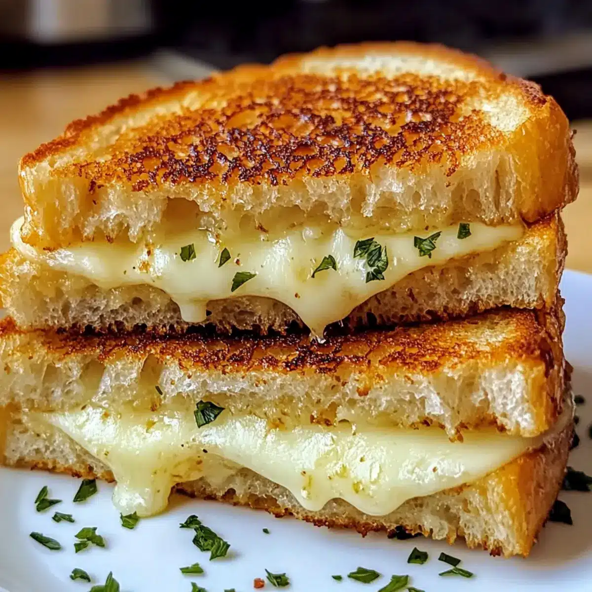 Nimm die Sandwiches aus der Pfanne und lasse sie kurz auf einem Kuchengitter abkühlen, um ein Durchweichen zu vermeiden. Schneide sie diagonal in Hälften, um die geschmolzene Käsefüllung sichtbar zu machen. Serviere deinen Knoblauchbrot gegrillten Käse sofort für das beste Geschmackserlebnis.