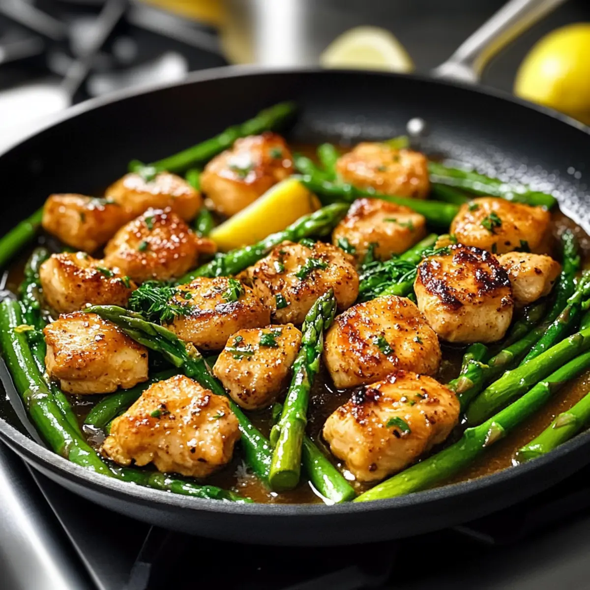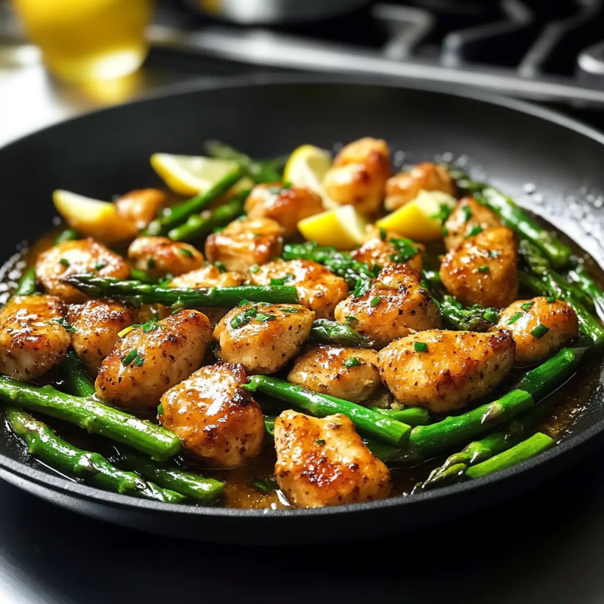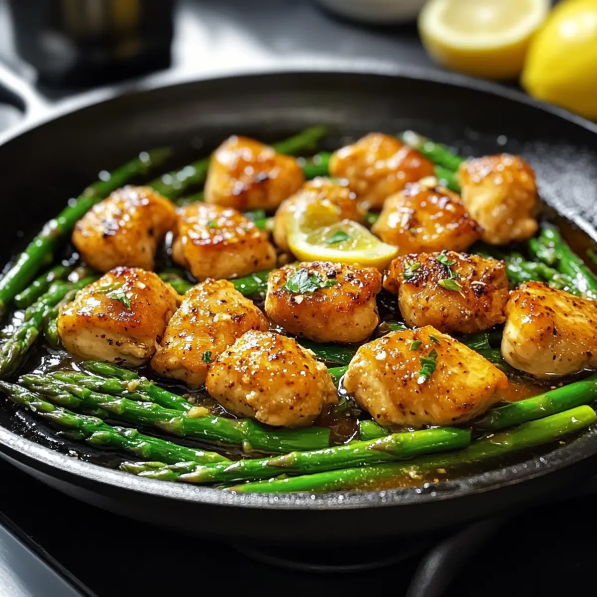 Knoblauchbutter-Hühnchenstücke mit Zitronen-Spargel schnell genießen