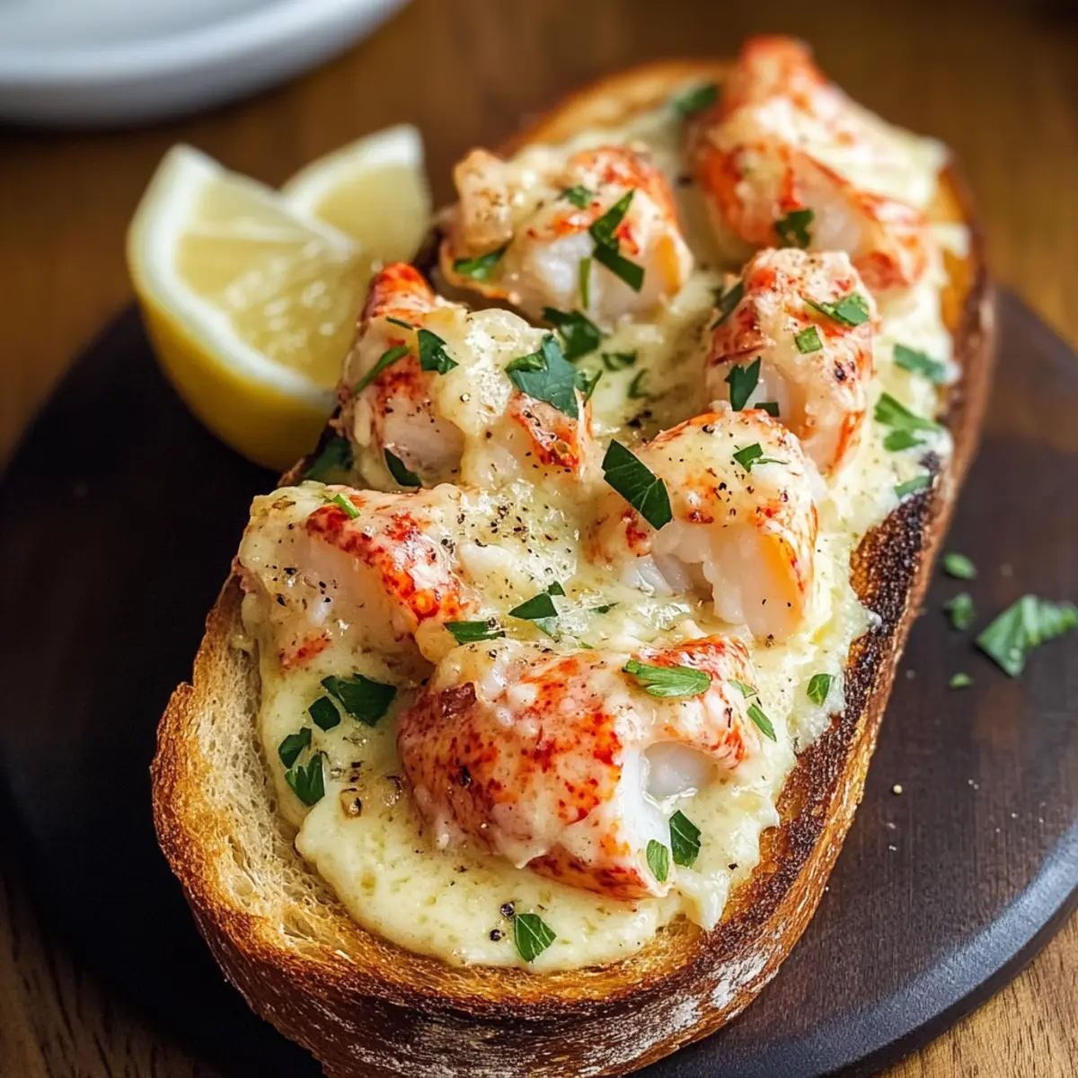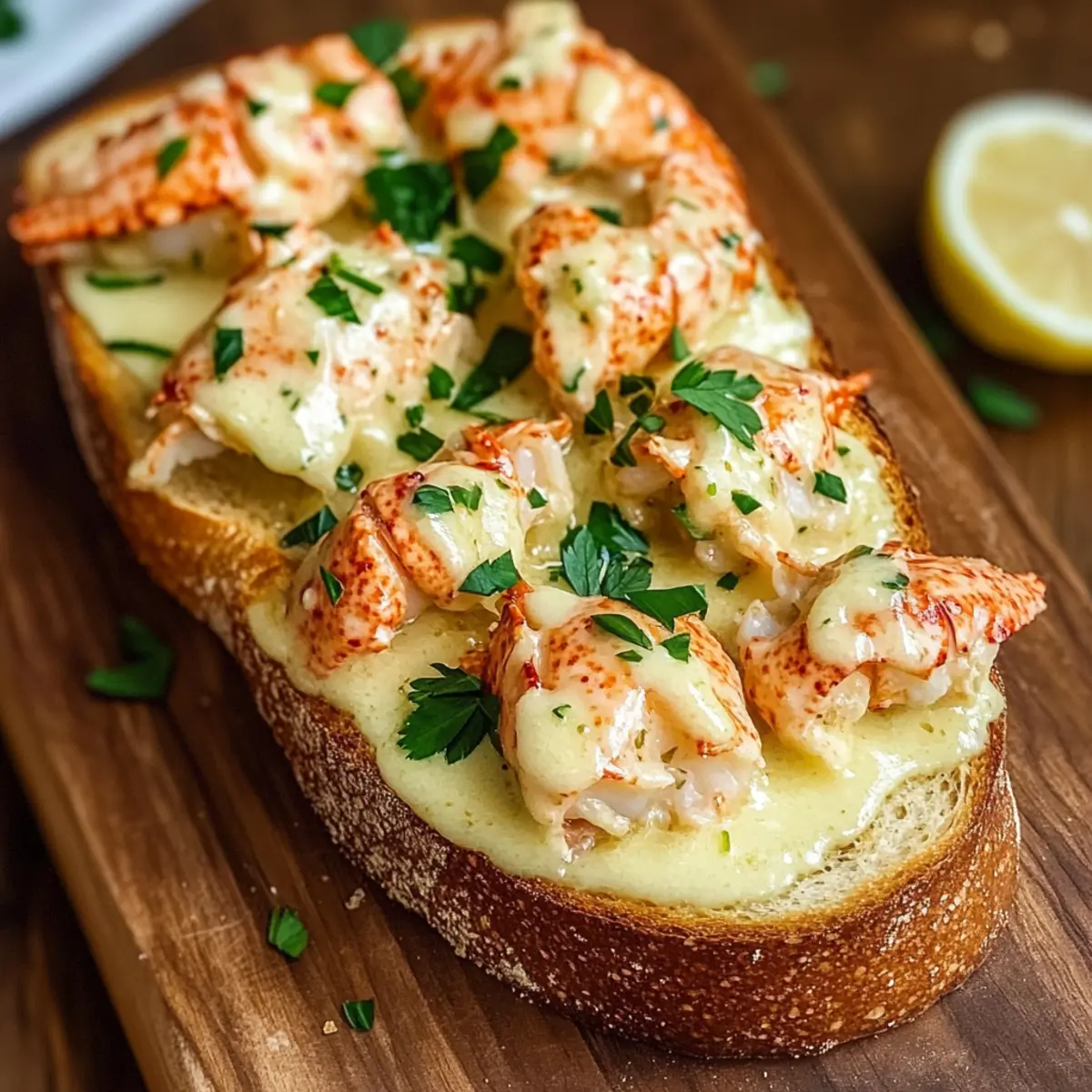 Serviert die Knoblauchbutter-Hummer-Sauerteig-Toast sofort, idealerweise mit frischen Zitronenspalten und optionalen Garnituren wie zusätzlicher Petersilie oder Parmesan. Genießt das Gericht warm, während der Geschmack der Knoblauchbutter und des Hummers die Sinne umschmeichelt und unvergessliche Momente schafft.