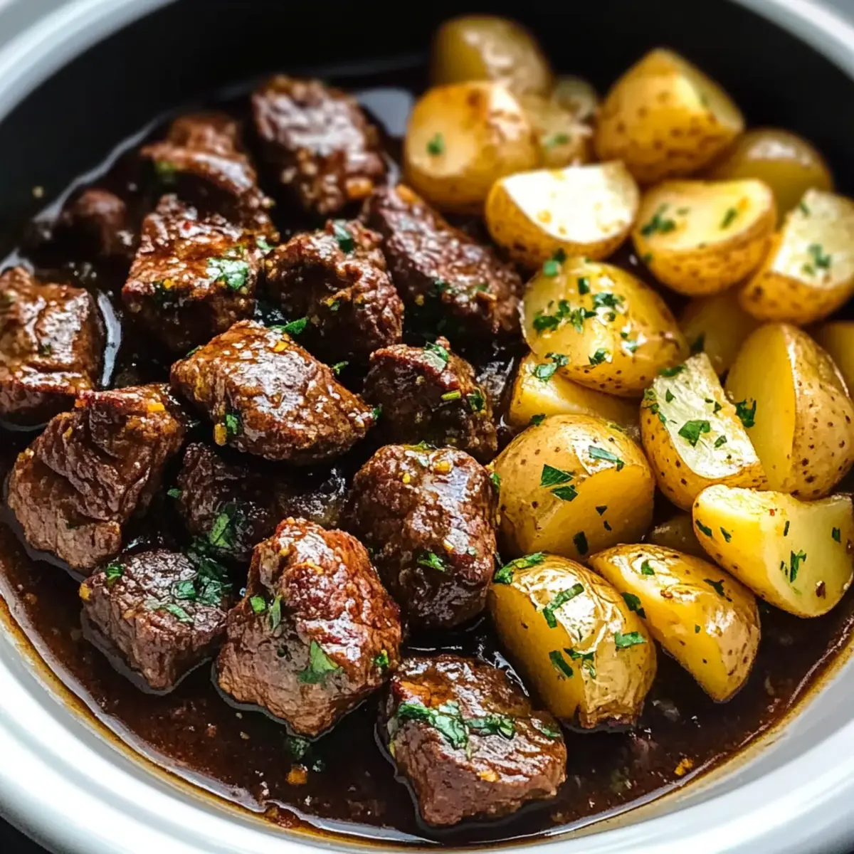 Genießen Sie dieses Rezept der langsame Kochgarlic Butter Rinderbissen mit Kartoffeln, das Ihren Gaumen verwöhnt und Ihnen ein Gefühl von Heimatlichkeit vermittelt!