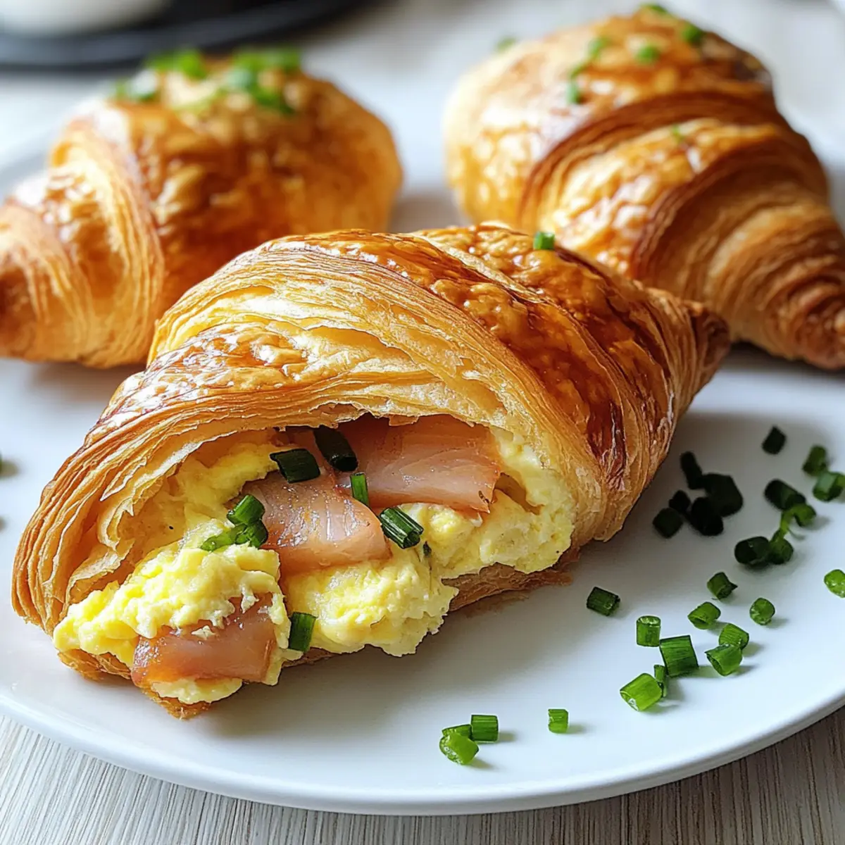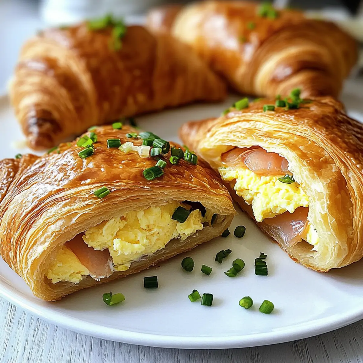 - Die Croissants aus dem Ofen nehmen und mit frisch gehacktem Schnittlauch garnieren. Sofort servieren.