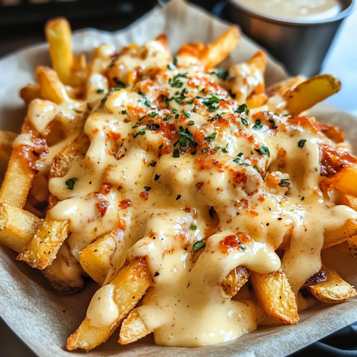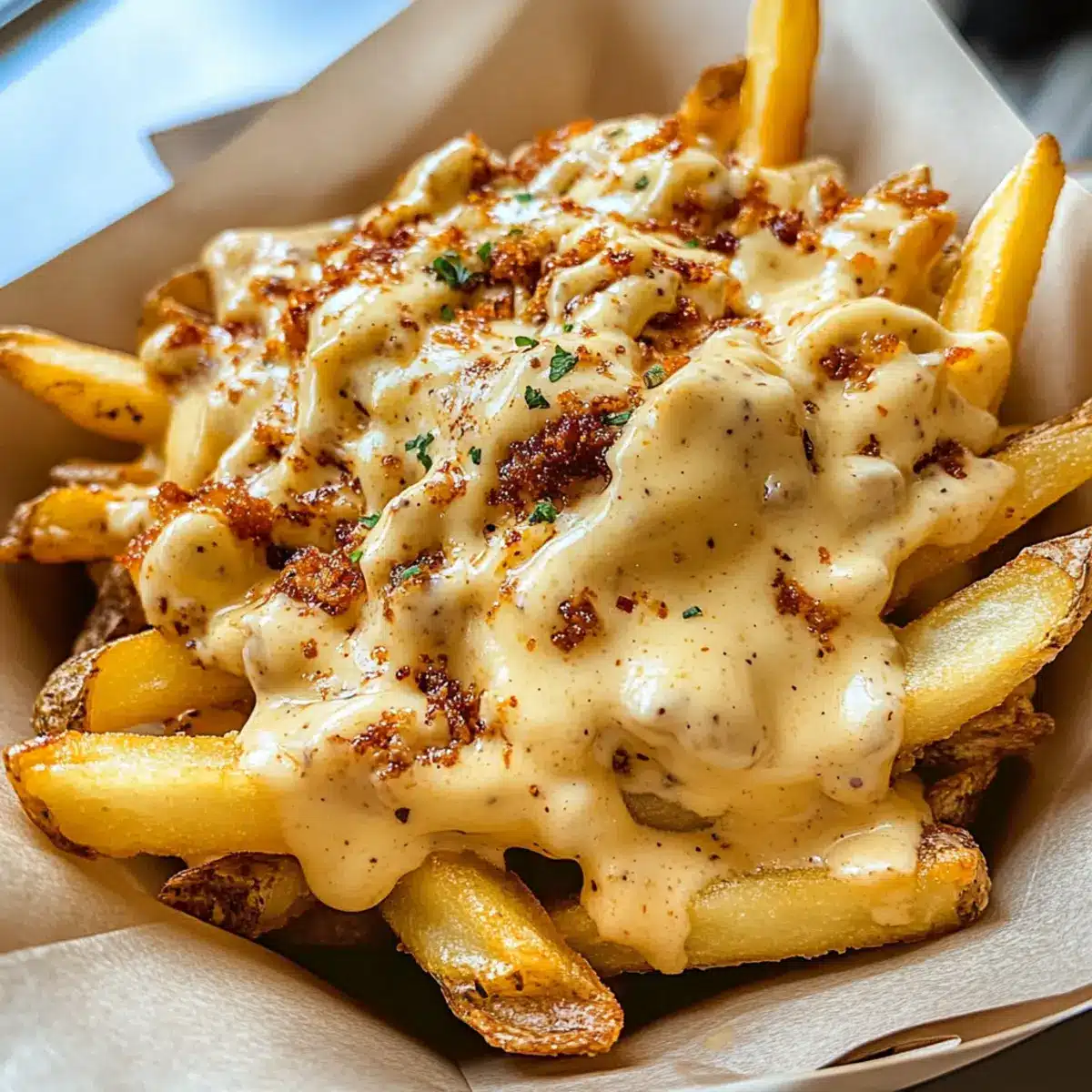 Köstliche Textur: Die knusprigen Pommes, überzogen mit einer cremigen Sauce, liefern genau die richtige Balance zwischen Crunch und Cremigkeit.