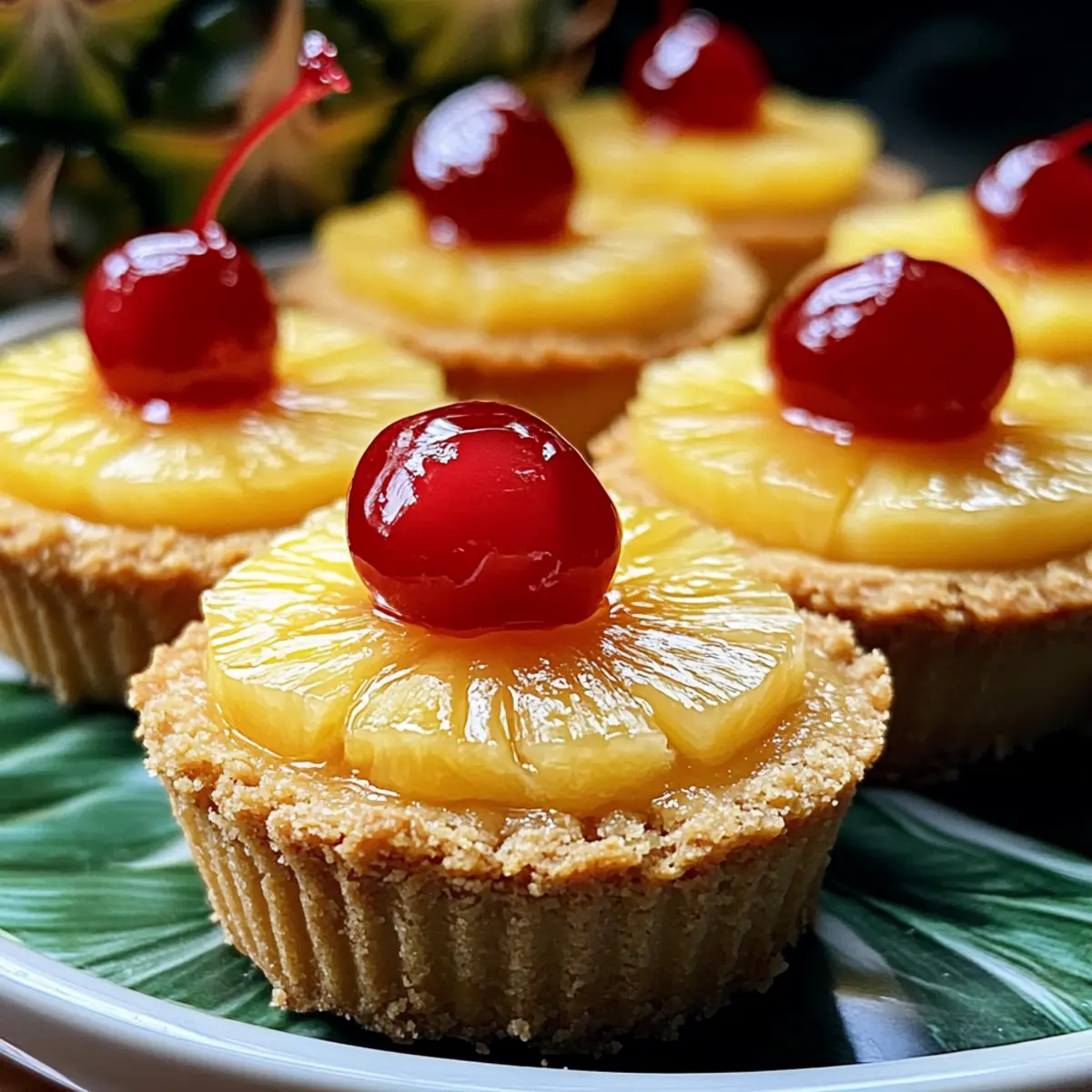 Für das Servieren vorsichtig die Mini Ananas-Wendekuchen auf eine Platte umdrehen. Dekoriere sie mit frischen Ananasstücken und Maraschino-Kirschen, um sie ansprechend zu präsentieren. Diese kleinen, feinen Köstlichkeiten bringen tropische Freude auf jeden Tisch und sind ideal für gesellige Runden!